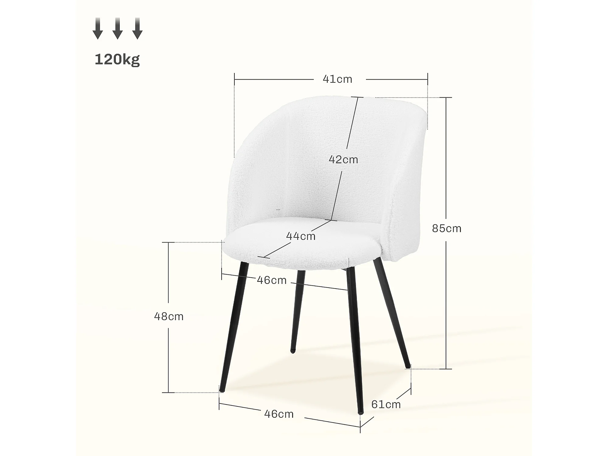 Chaise de salle à manger en revêtement en moutonnet blanc 51x80 cm-Nolan