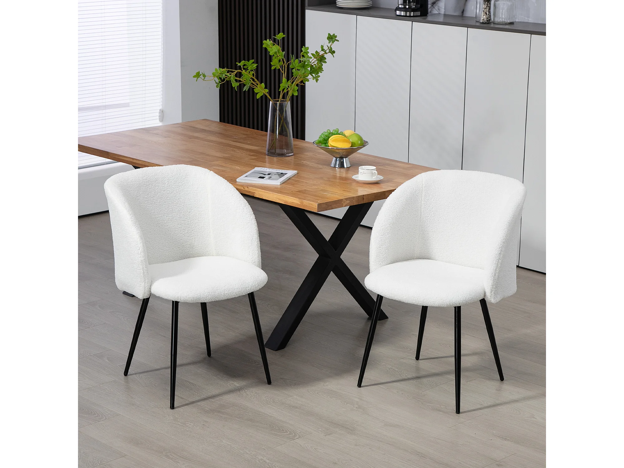 Fauteuil en tissu bouclette blanc Valentin (lot de 2)