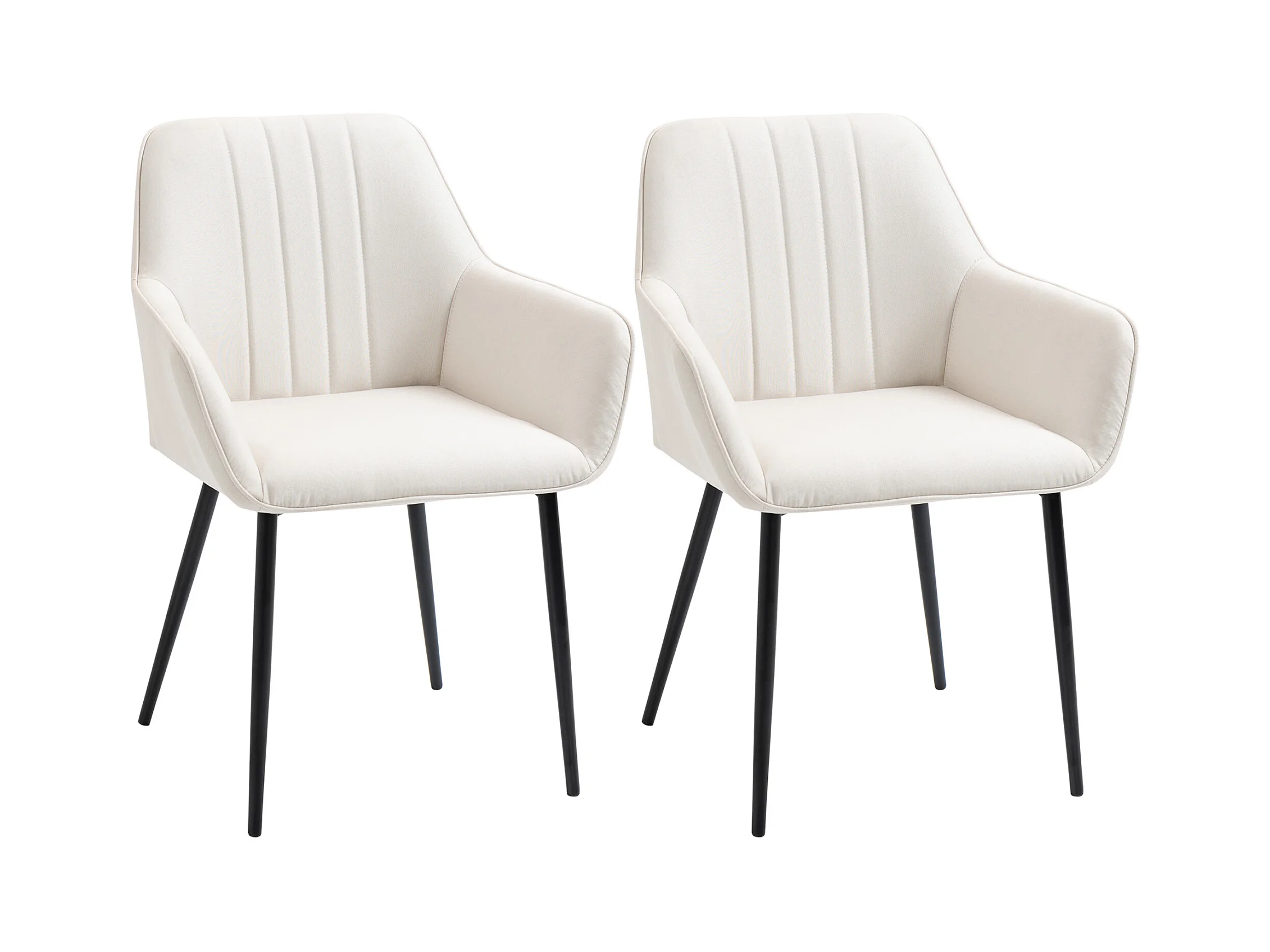 Chaises de visiteur design scandinave - lot de 2 chaises - pieds effilés métal noir - assise dossier accoudoirs ergonomiques lin crème