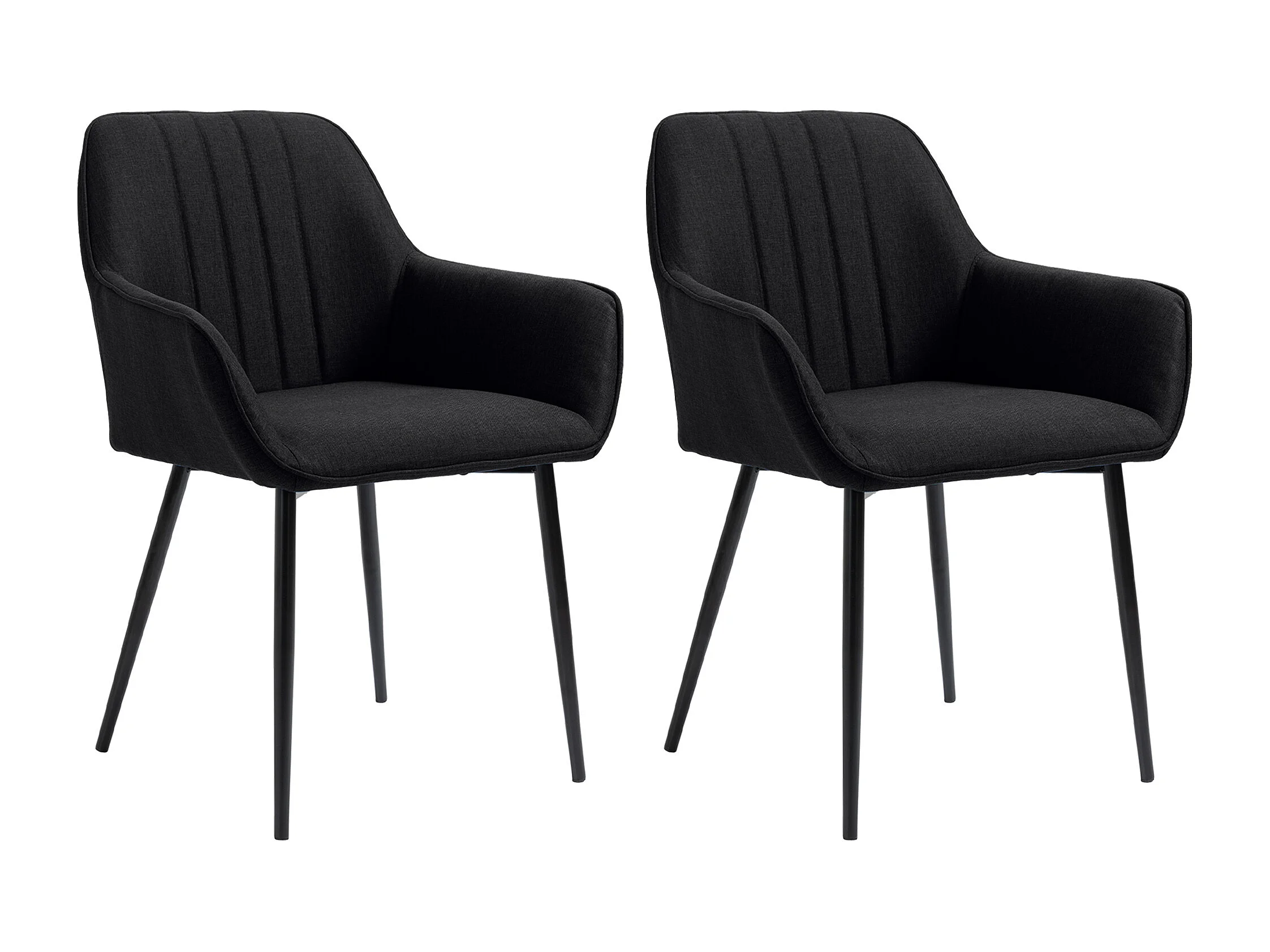 Chaises de visiteur design scandinave - lot de 2 chaises - pieds effilés métal noir - assise dossier accoudoirs ergonomiques lin noir