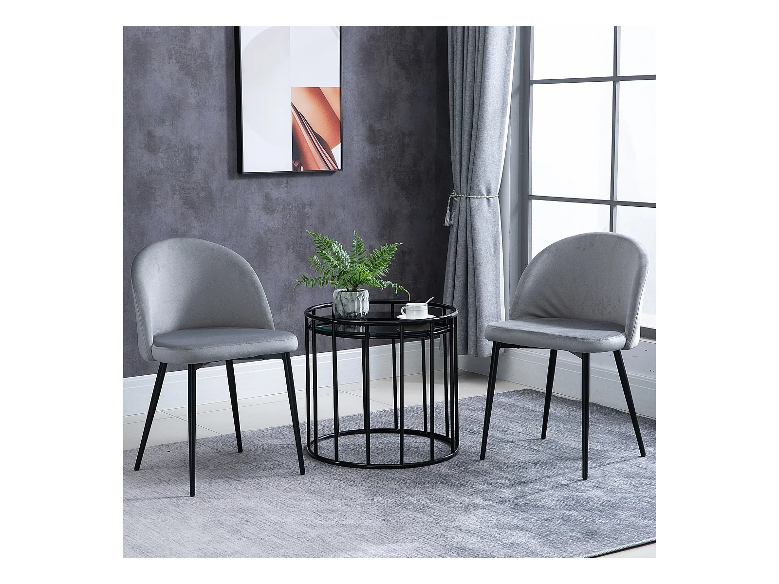 Lot 2 chaises en velours gris rembourré et pieds métal - NANY 2