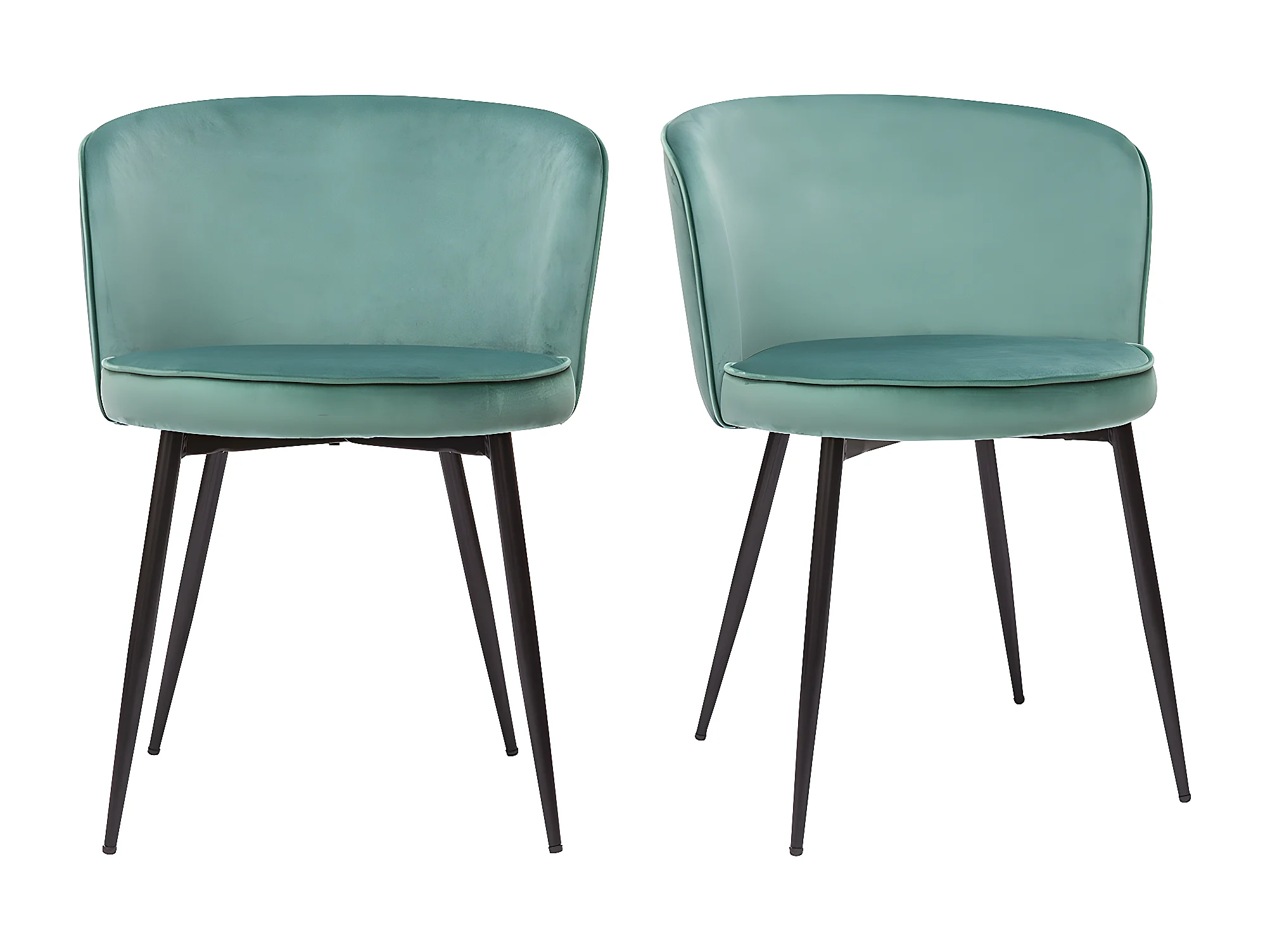 Chaises design en tissu velours vert céladon et métal noir (lot de 2) SERIF