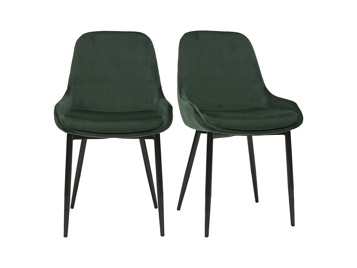Chaises design en tissu velours vert foncé et métal noir (lot de 2) HOLO