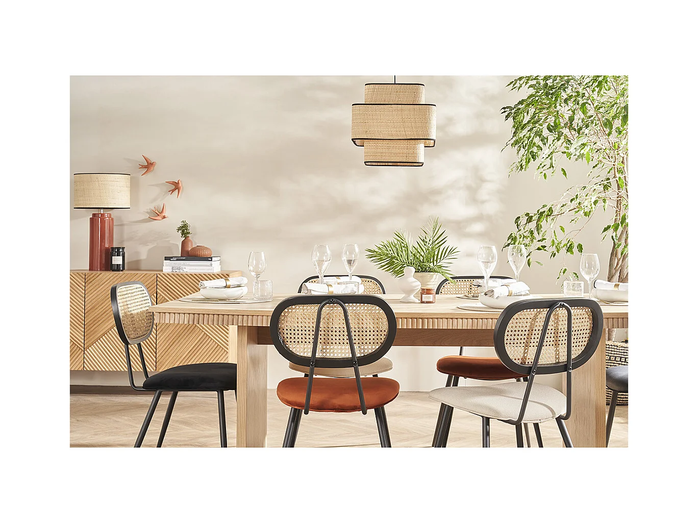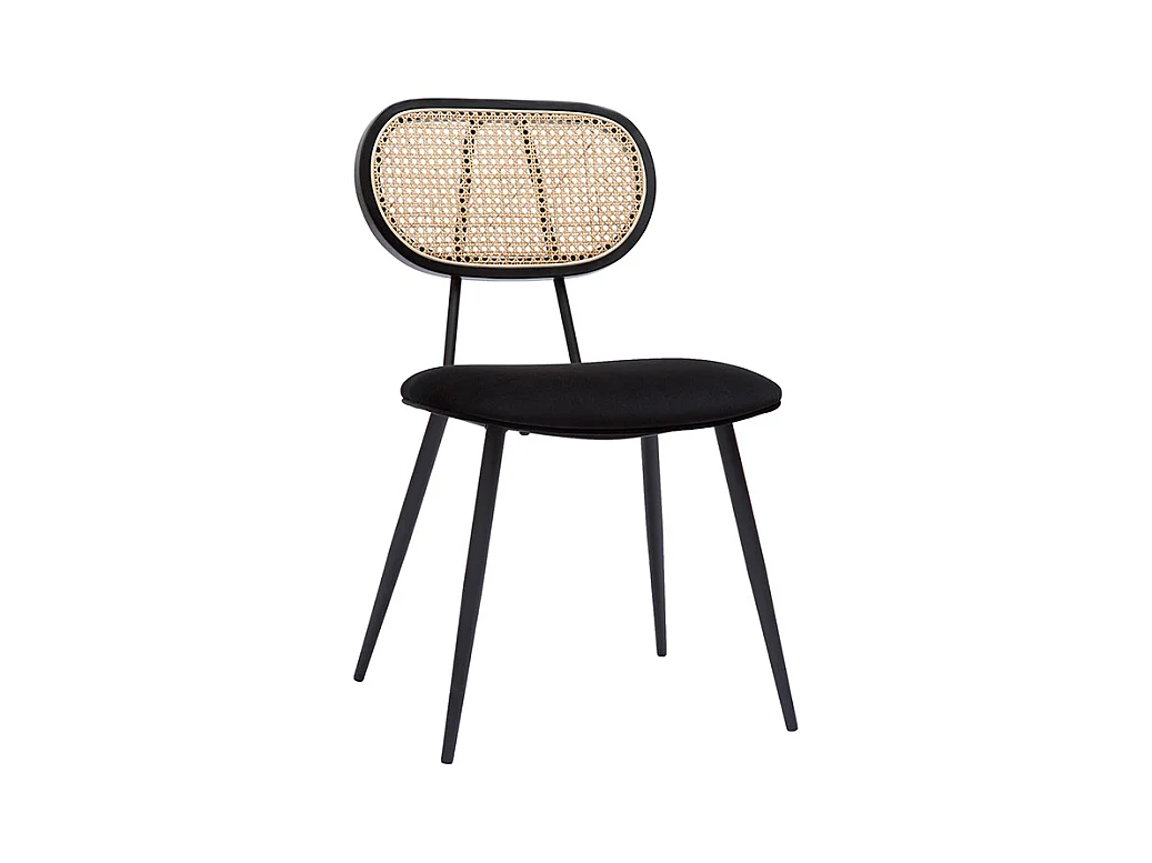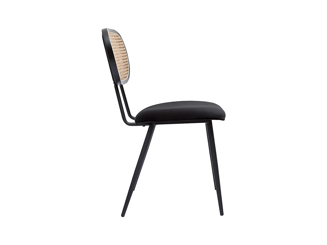 Chaises design noires en tissu velours, métal et cannage rotin naturel (lot de 2) TOLMA