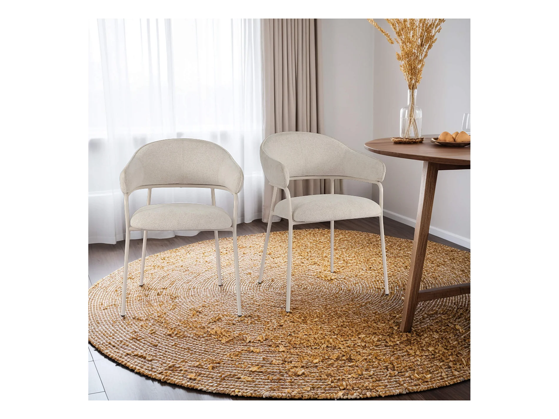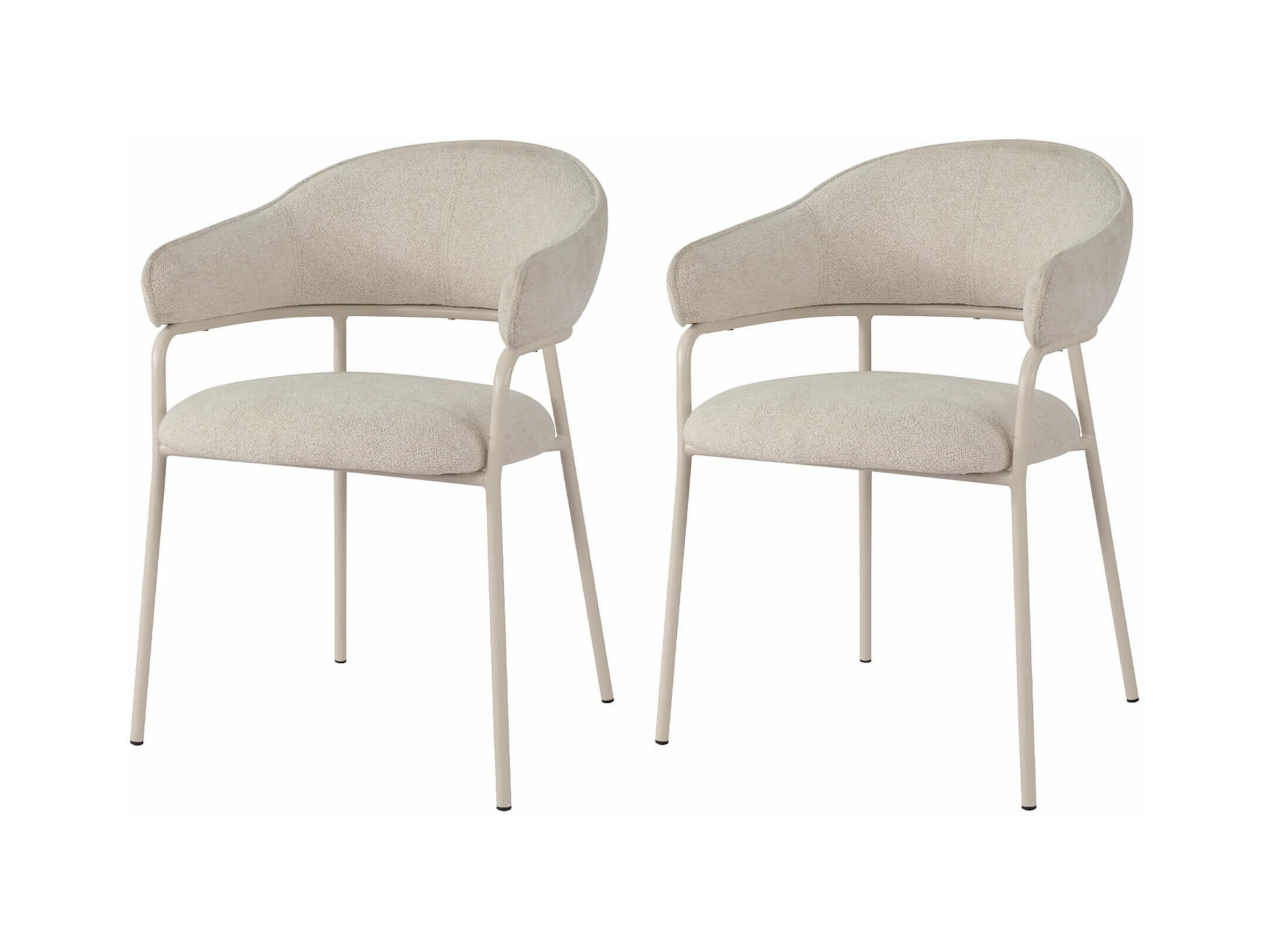 Chaises Dorstenia 82,5x57x56,5 Tissu Polyester Acier Blanc Perle Moderne ENSEMBLE 2 pièces