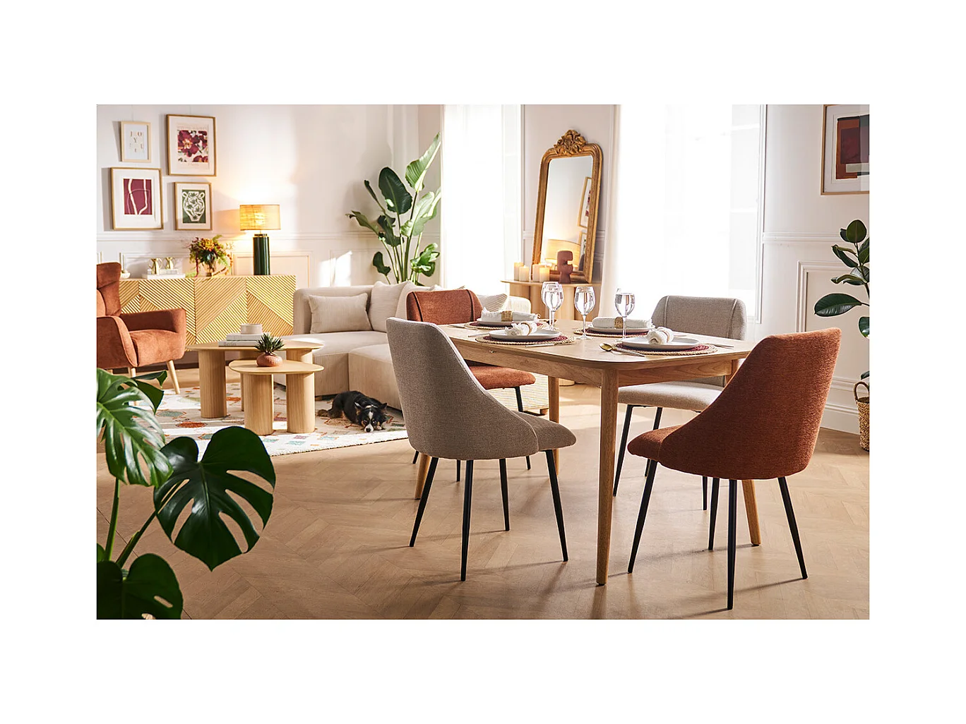 Chaises en tissu effet velours texturé beige et métal noir (lot de 2) HIGGINS