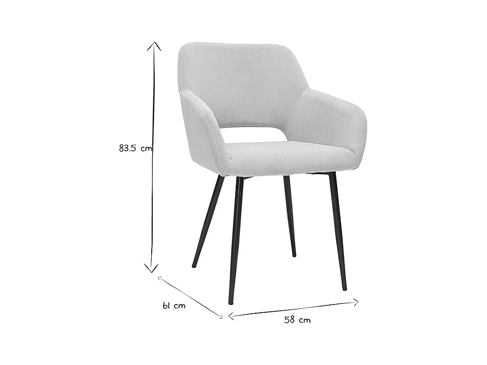Chaises en tissu velours côtelé taupe et métal noir (lot de 2) LAURETTE