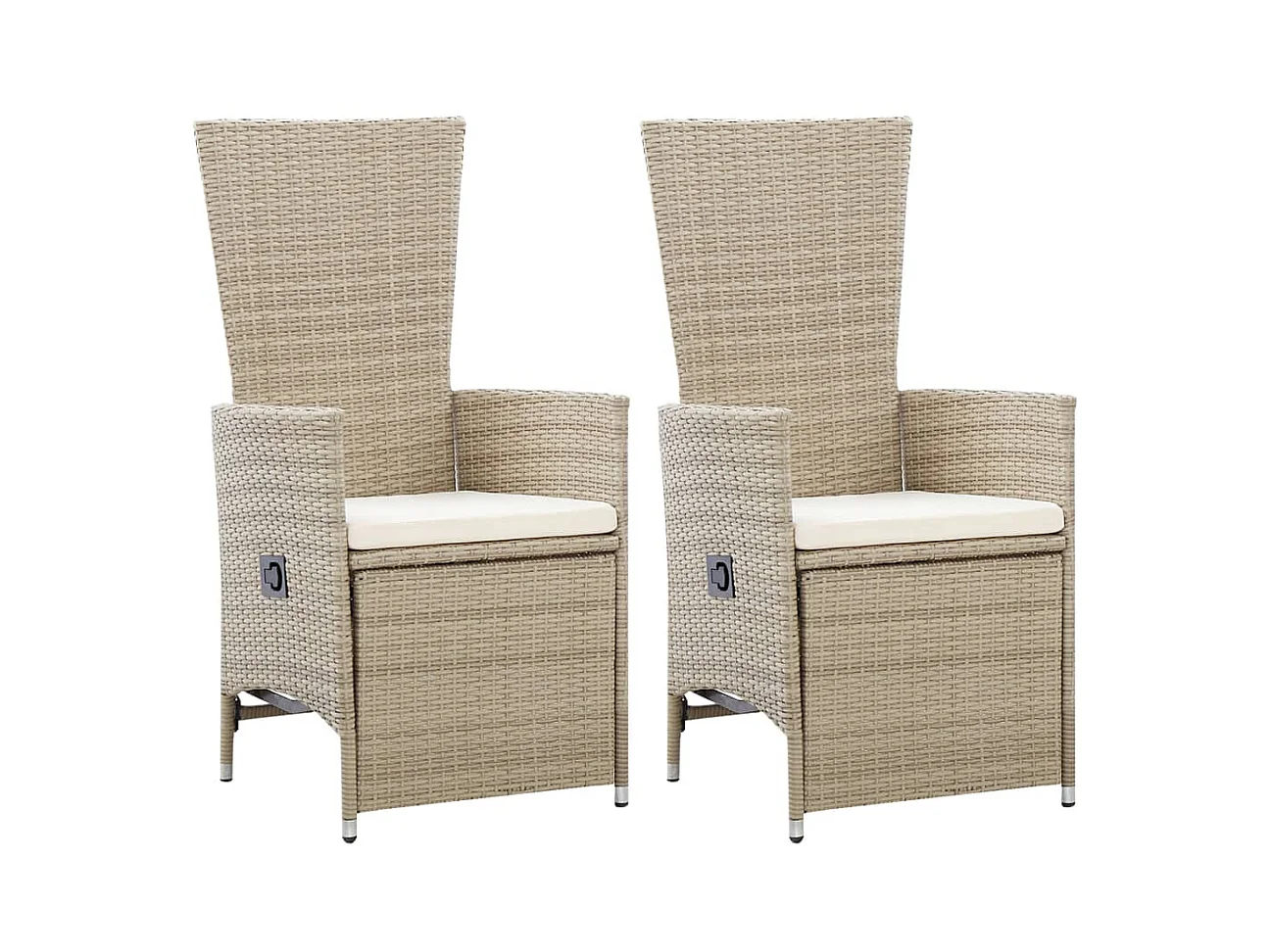 Chaises inclinables 2 pcs et coussins Résine tressée Beige SEF66367