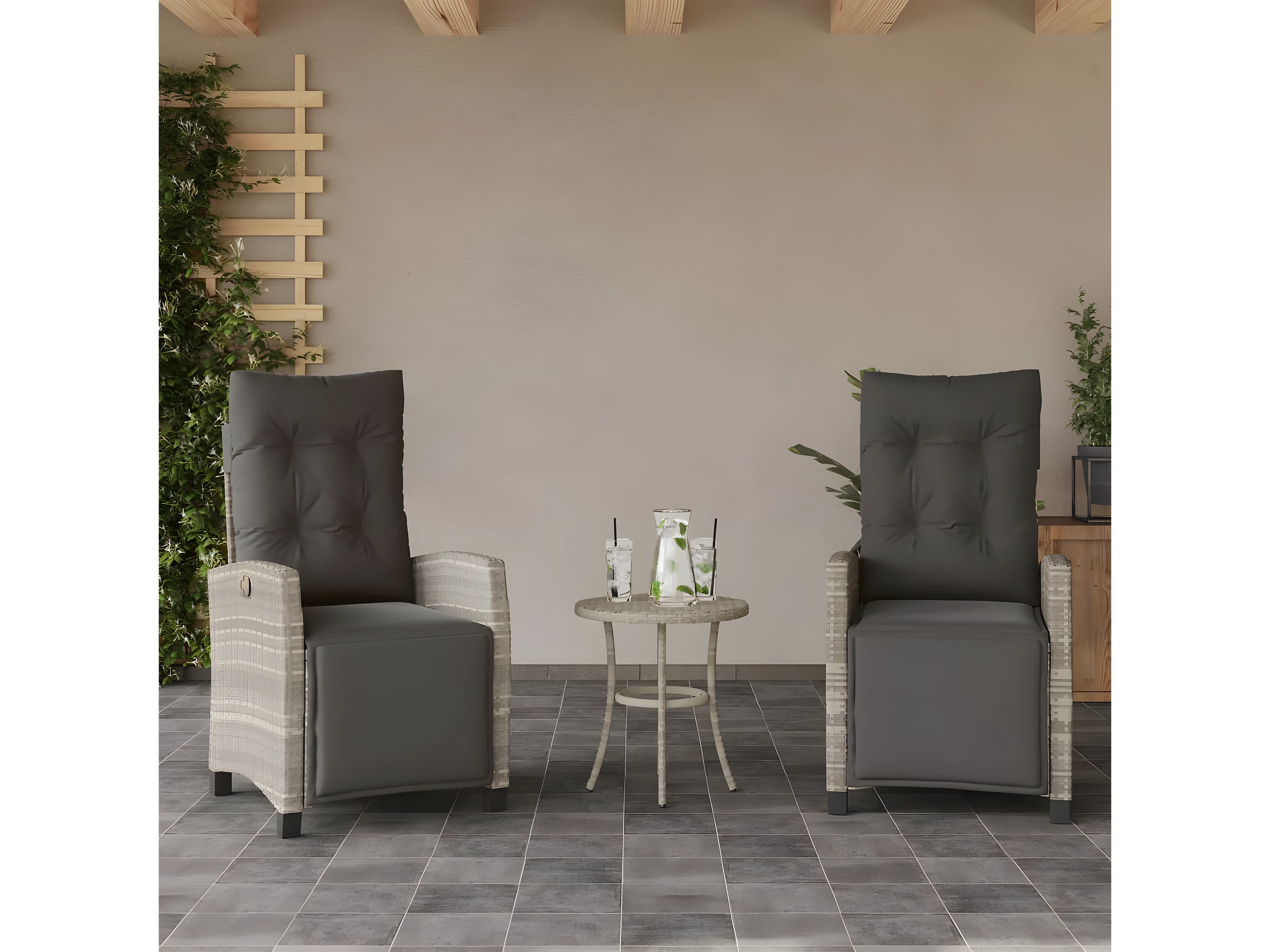 Chaises inclinables de jardin lot de 2 avec repose-pied rotin