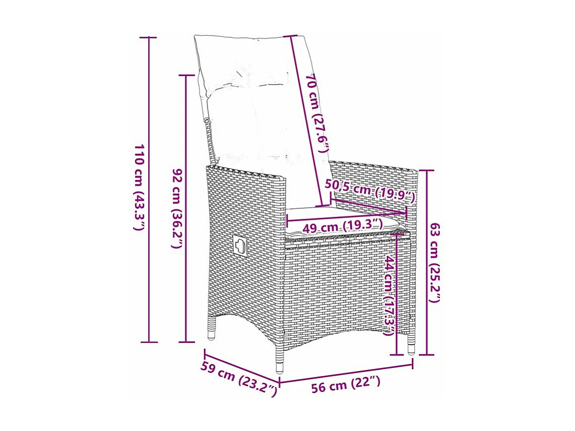 Chaises inclinables de jardin lot de 2 et coussins gris rotin