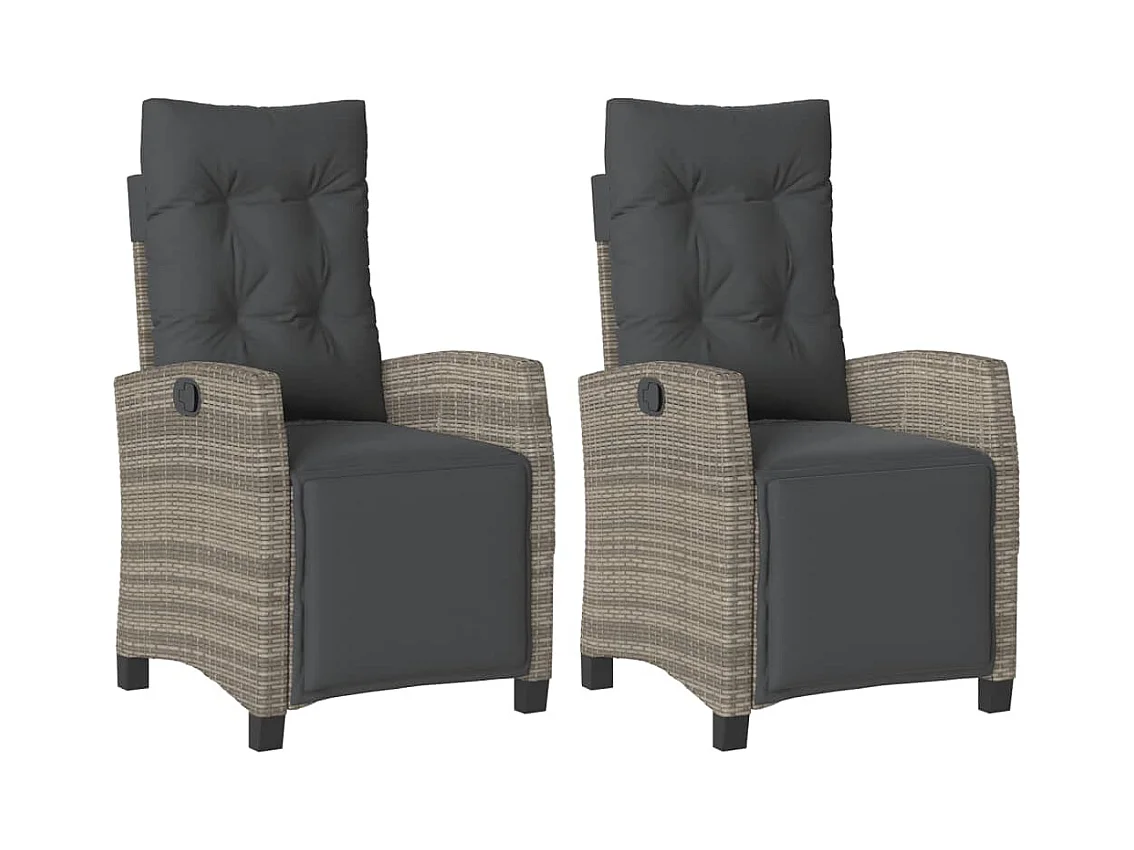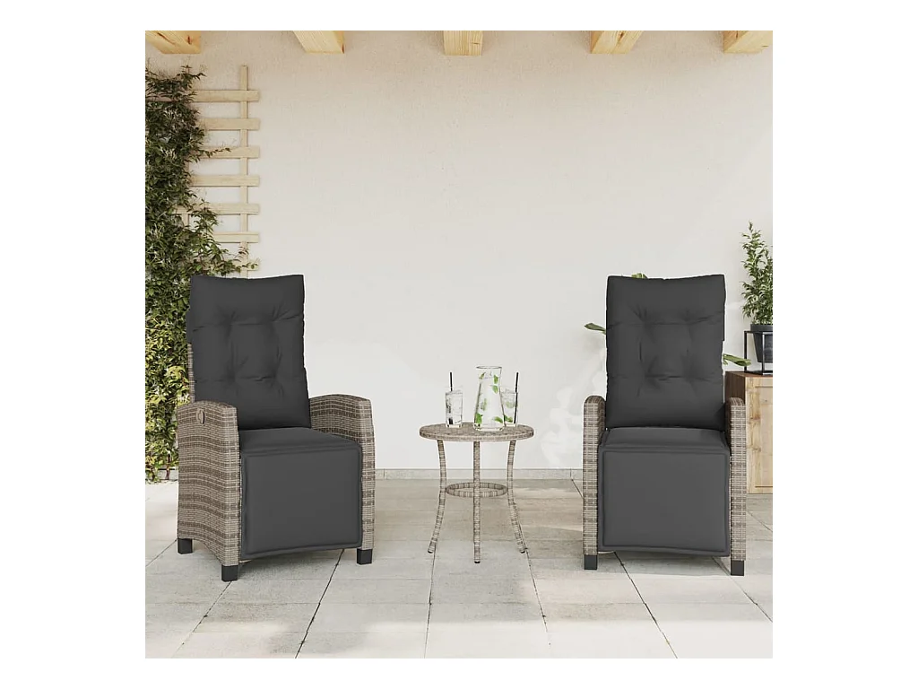 Chaises inclinables de jardin lot de 2 et repose-pied rotin REO19004