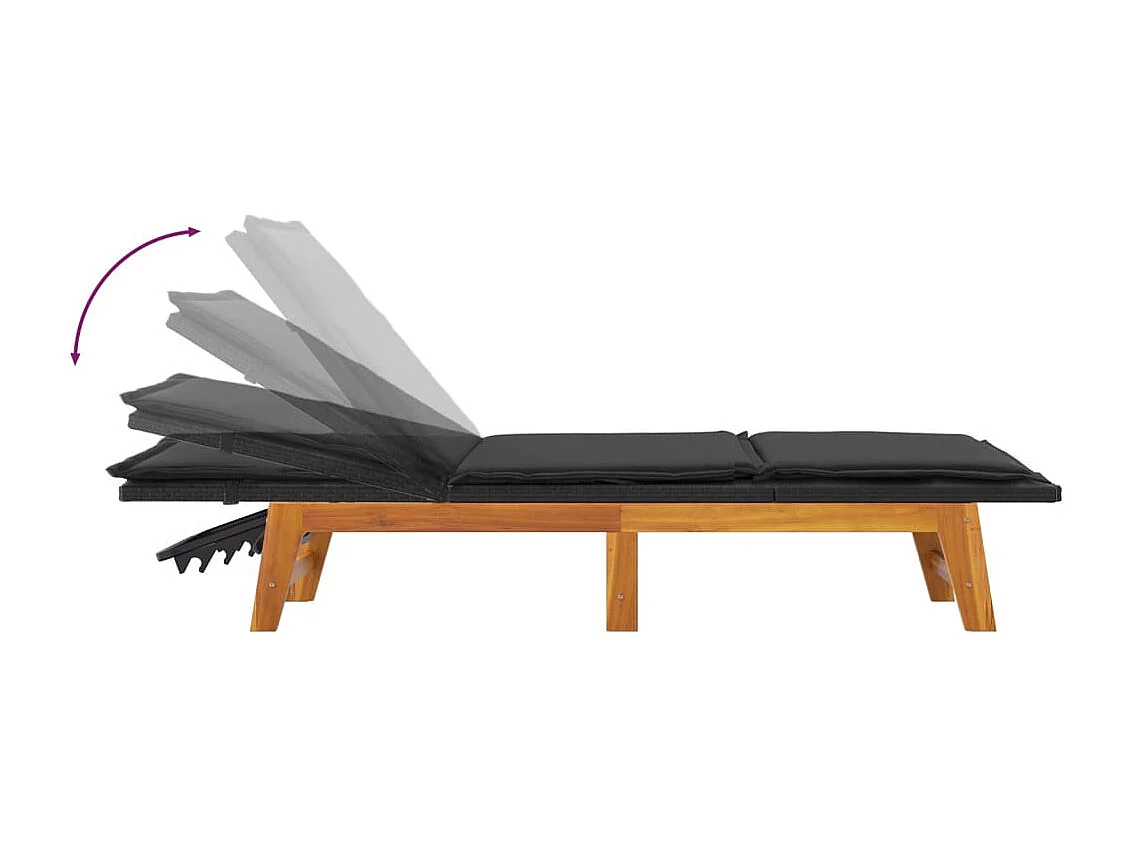 Chaises longues et coussins 2 pcs Résine tressée-bois d'acacia