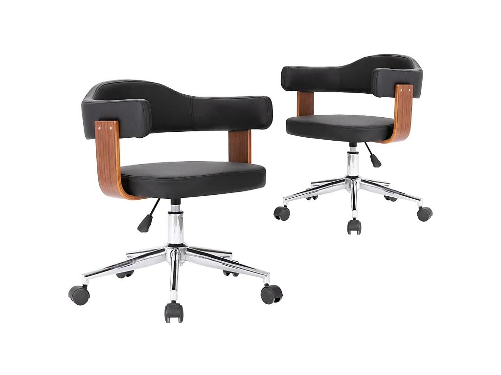 Chaises pivotantes à dîner 2 pcs Noir Bois courbé et similicuir
