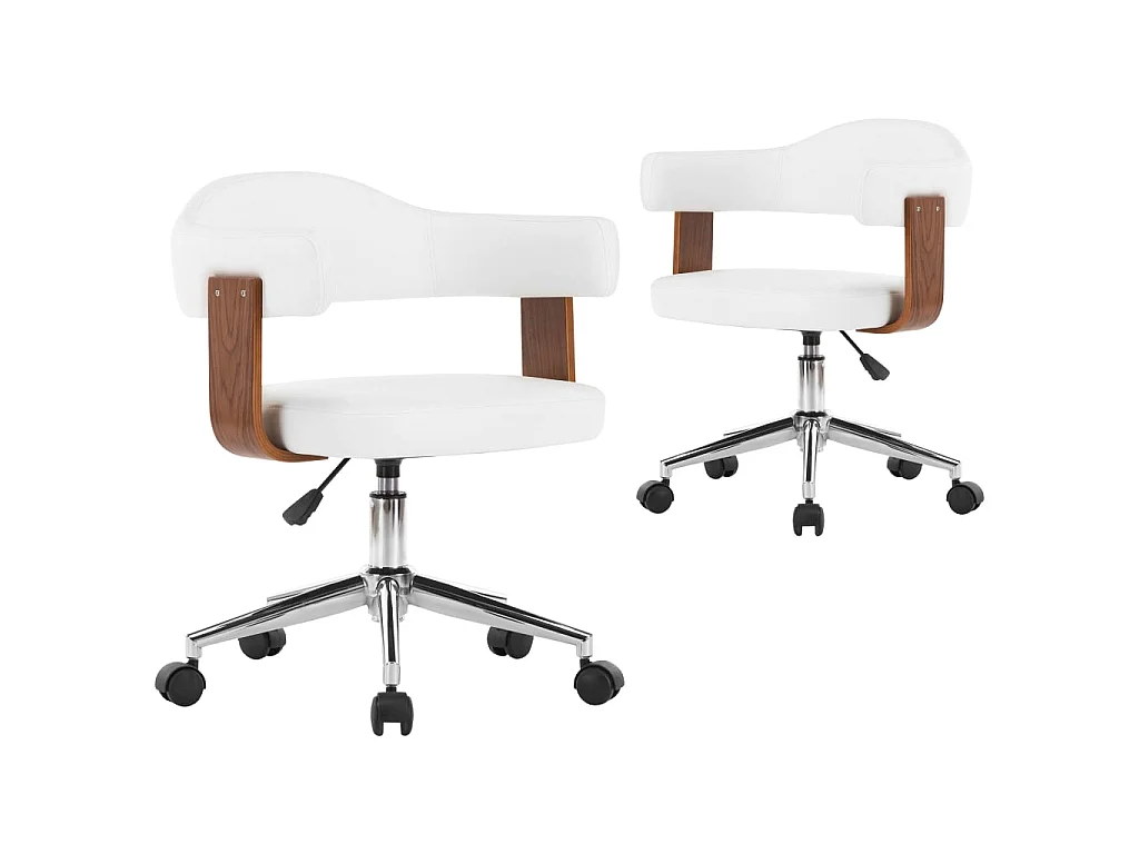 Chaises pivotantes à dîner 2pcs Blanc Bois courbé et similicuir
