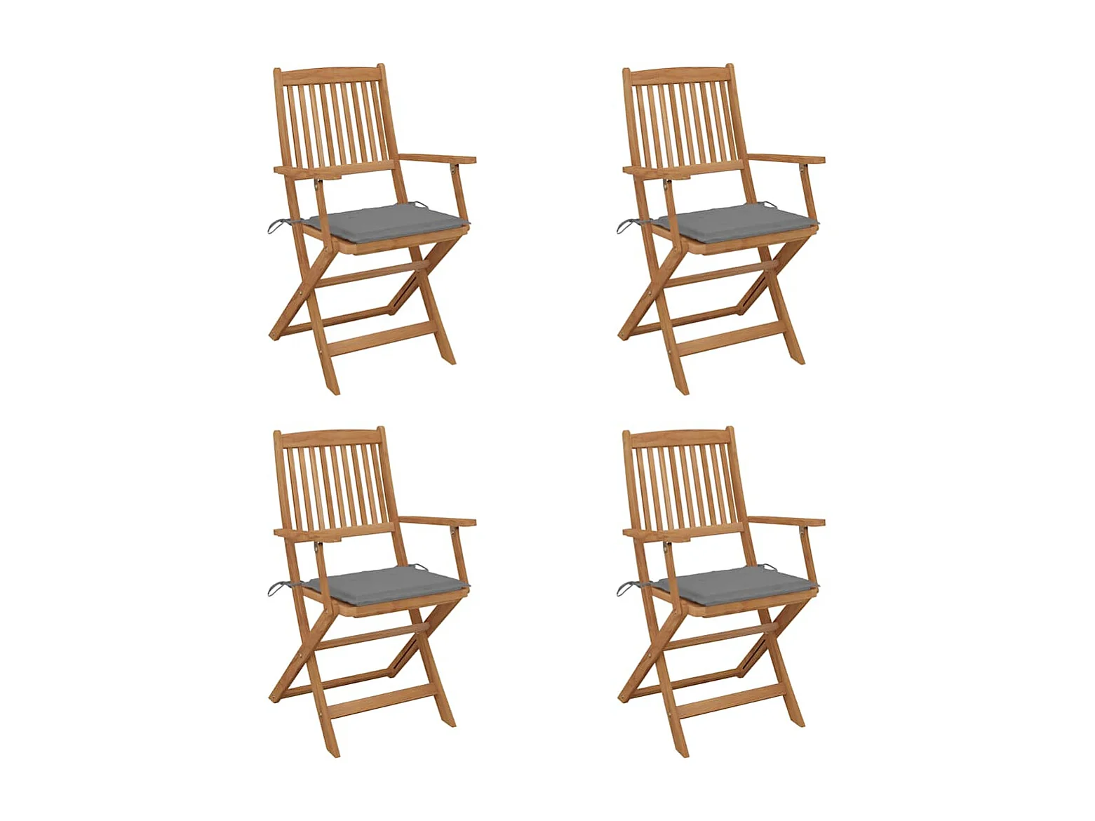Chaises pliables de jardin 4 pièces avec coussins Bois d'acacia