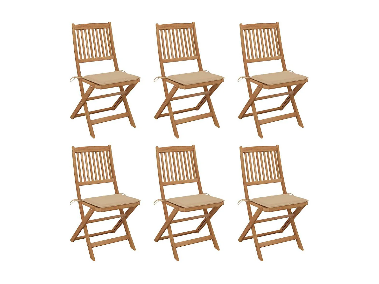 Chaises pliables de jardin lot de 6 avec coussins Bois d'acacia