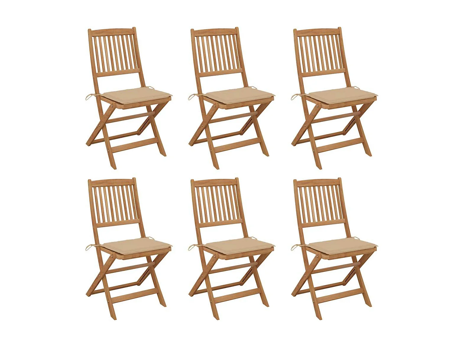 Chaises pliables de jardin lot de 6 avec coussins Bois d'acacia