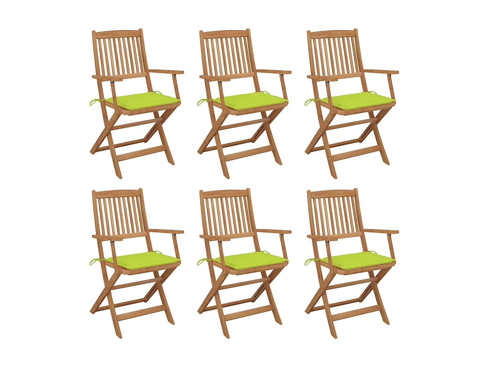 Chaises pliables de jardin 6 pièces avec coussins Bois d'acacia