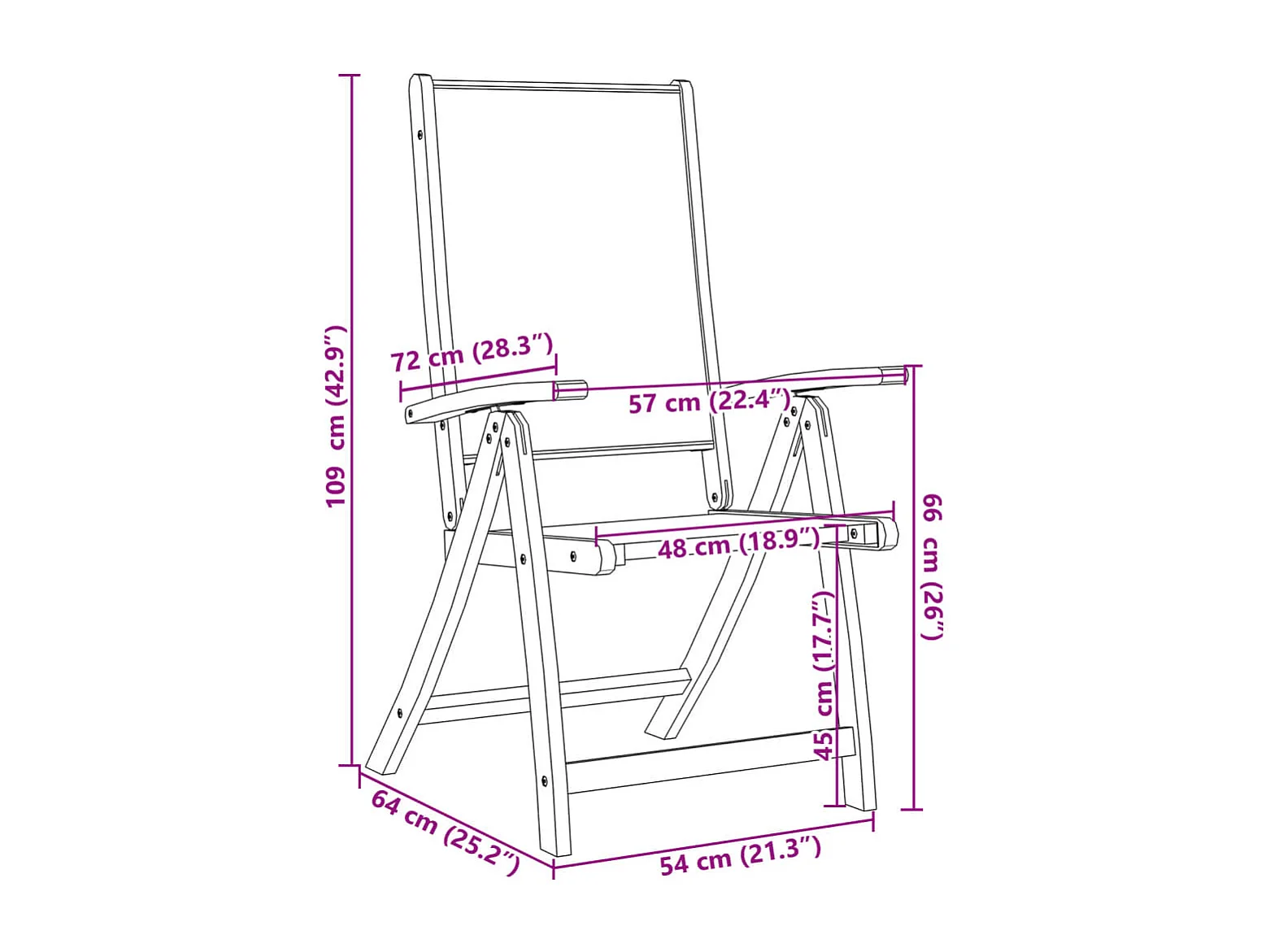Chaises pliables de jardin lot de 4 bois d'acacia et textilène