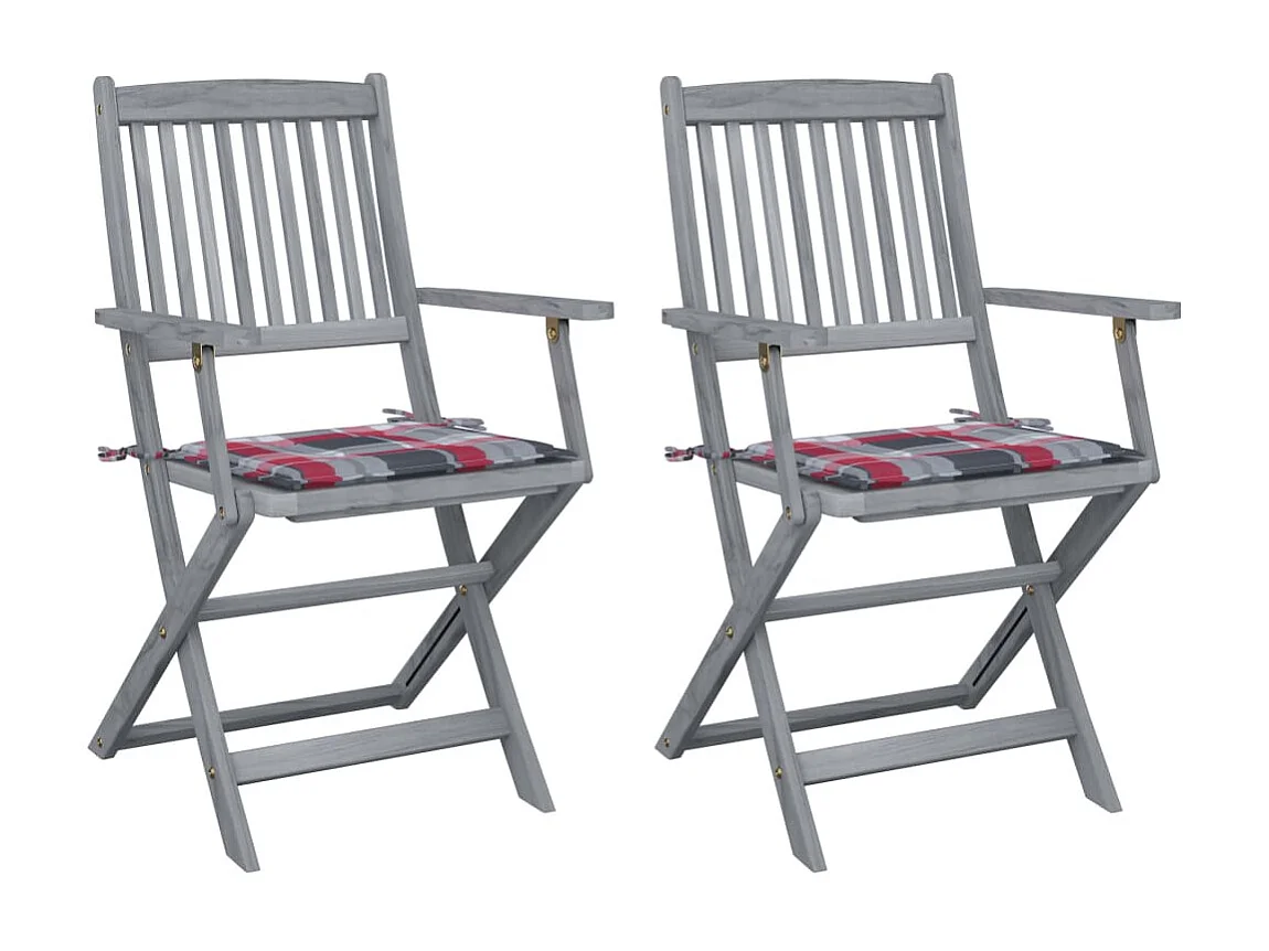 Chaises pliables d'extérieur 2 pièces avec coussins Bois d'acacia