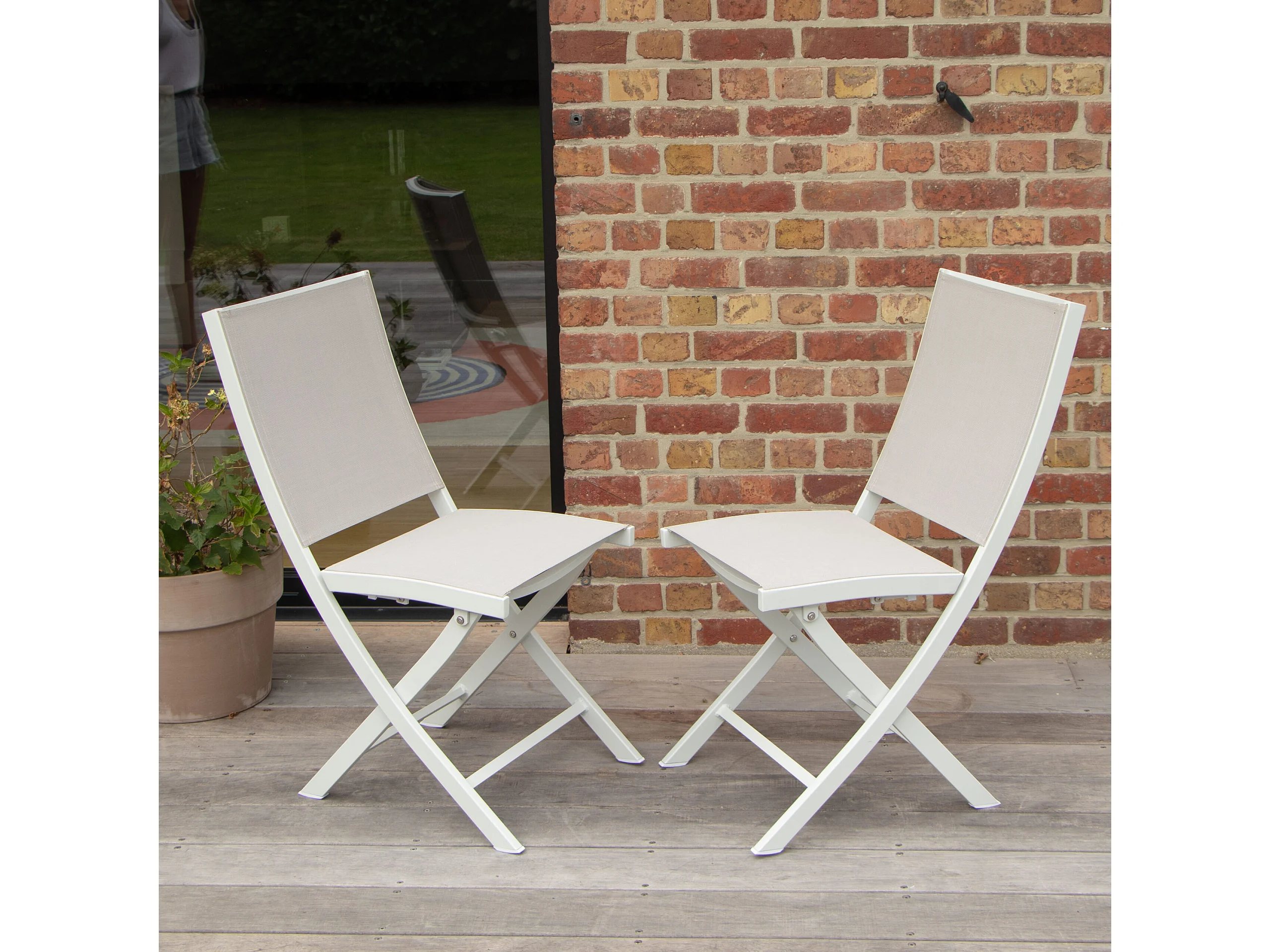 Lot de 2 chaises de jardin aluminium et textilène blanc