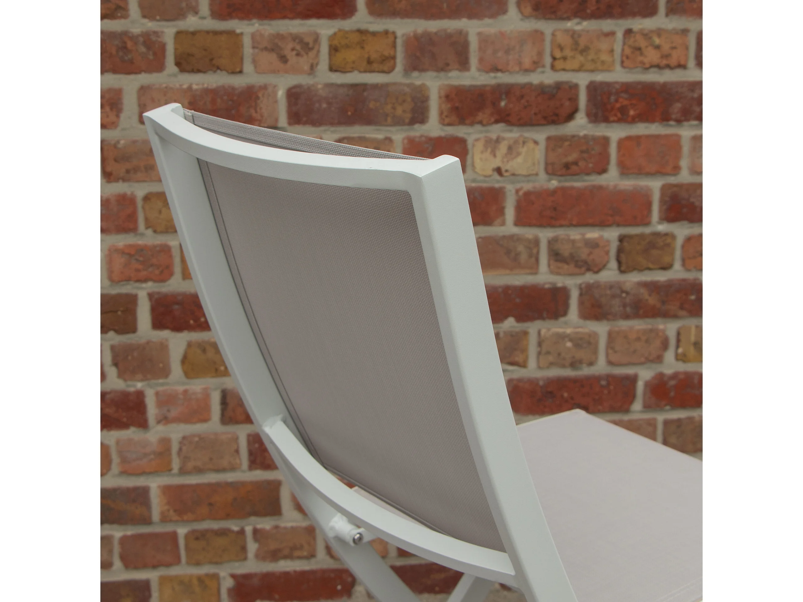 Chaises pliantes Modulo aluminium blanche, assise en textilène gris chiné