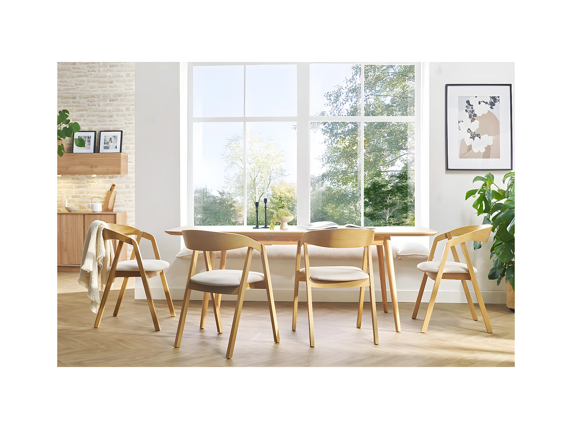 Chaises scandinaves empilables en bois clair chêne et tissu beige (lot de 2) LOVA