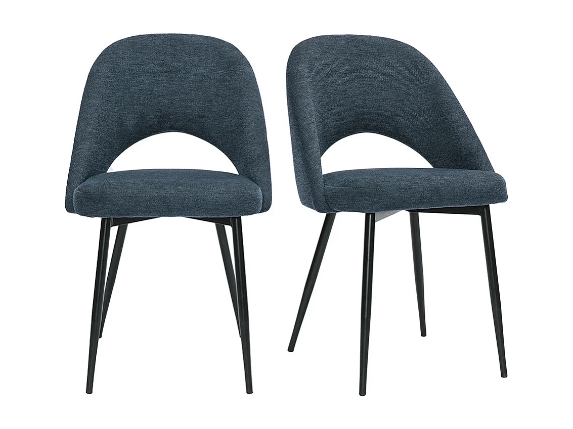 Chaises vintage en tissu effet velours texturé bleu foncé et métal noir (lot de 2) COSETTE