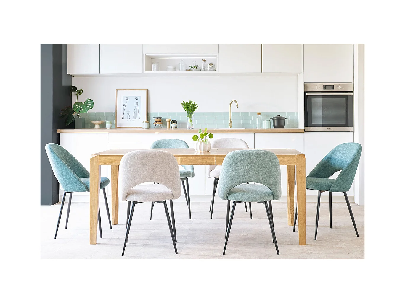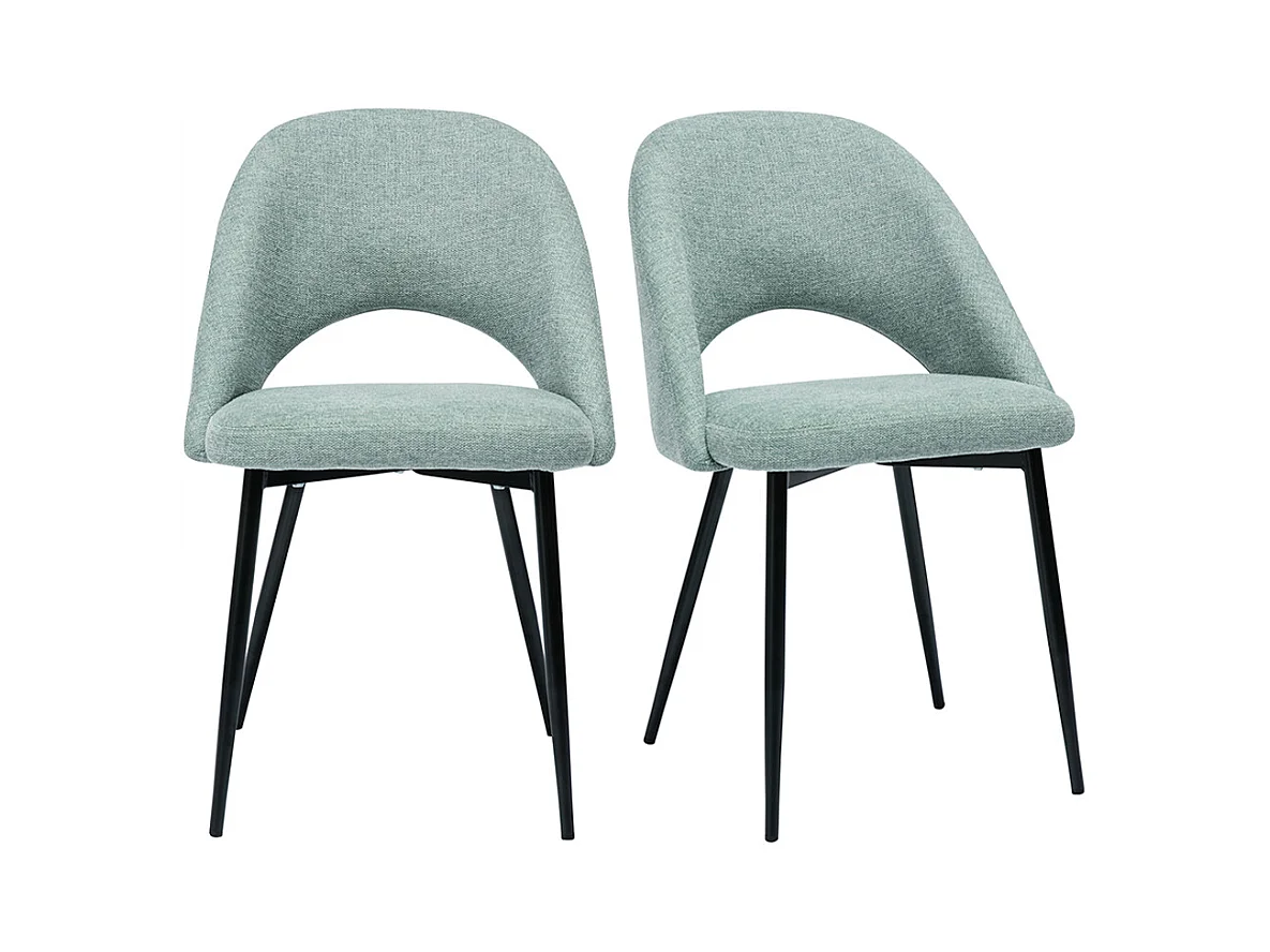 Chaises vintage en tissu effet velours texturé vert céladon et métal noir (lot de 2) COSETTE