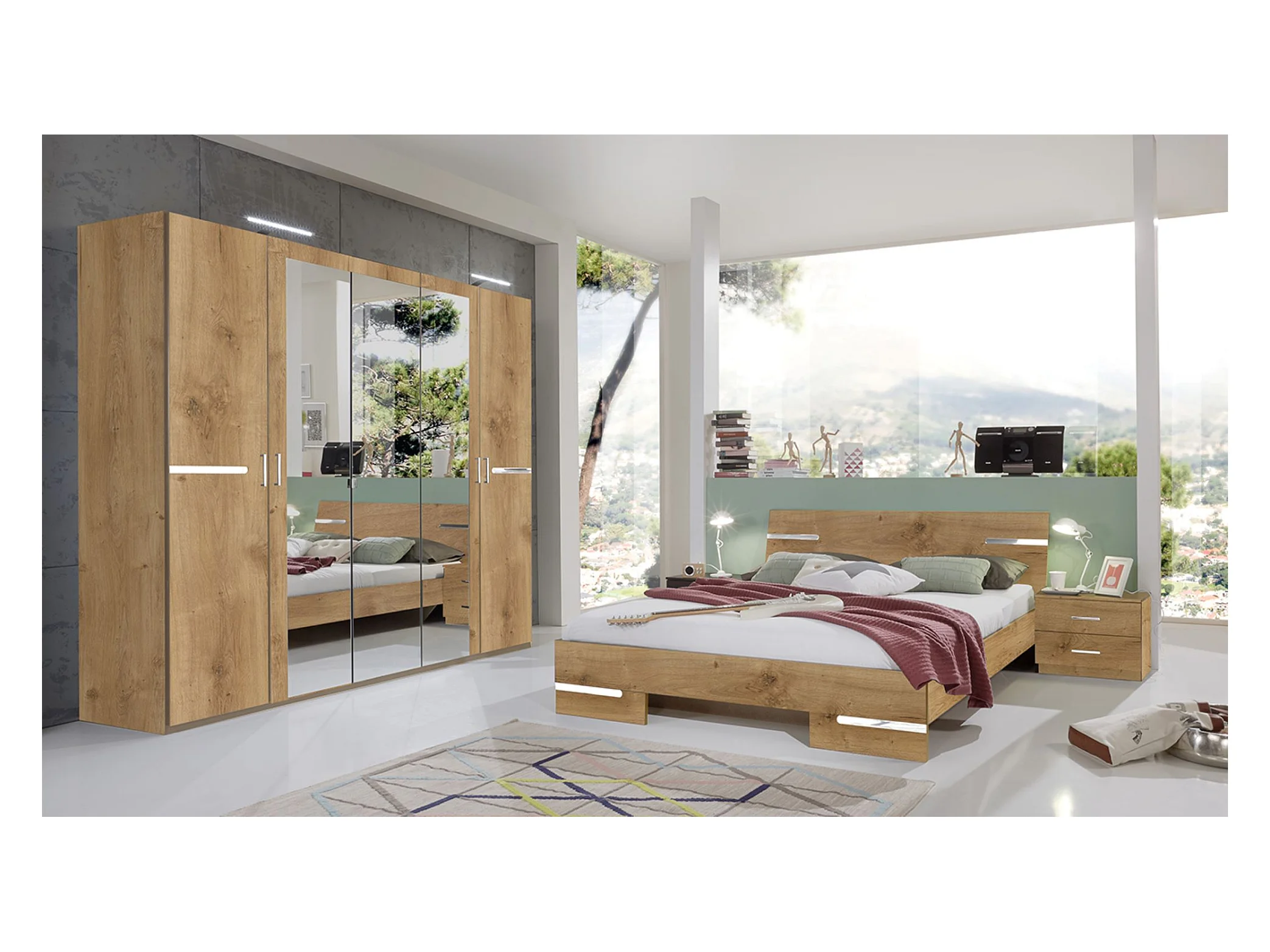 Chambre à coucher complète adulte (lit 140x190 cm + 2 chevets + armoire)