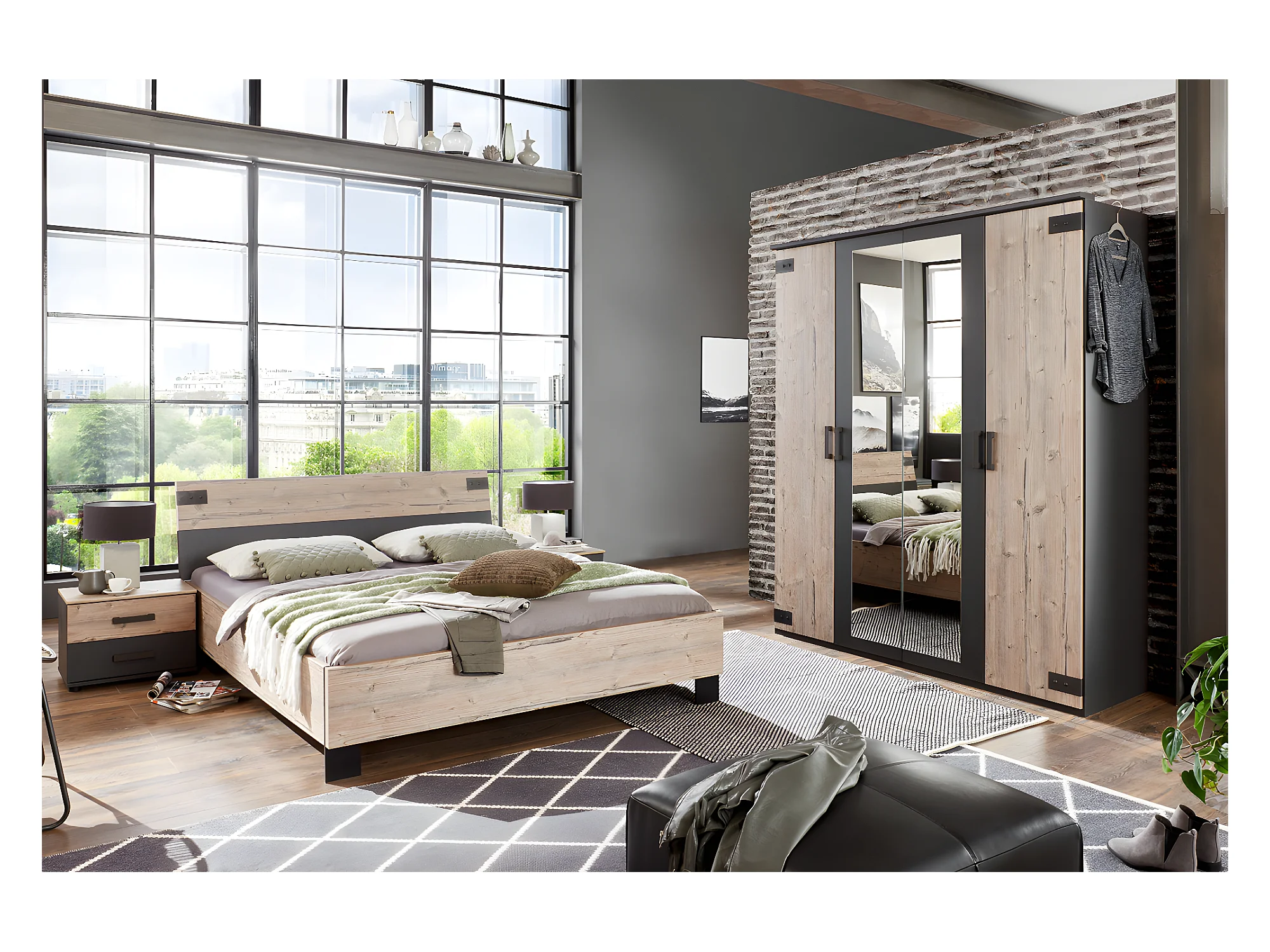 Chambre à coucher complète adulte (lit 140x200cm + 2 chevets + armoire) coloris chêne