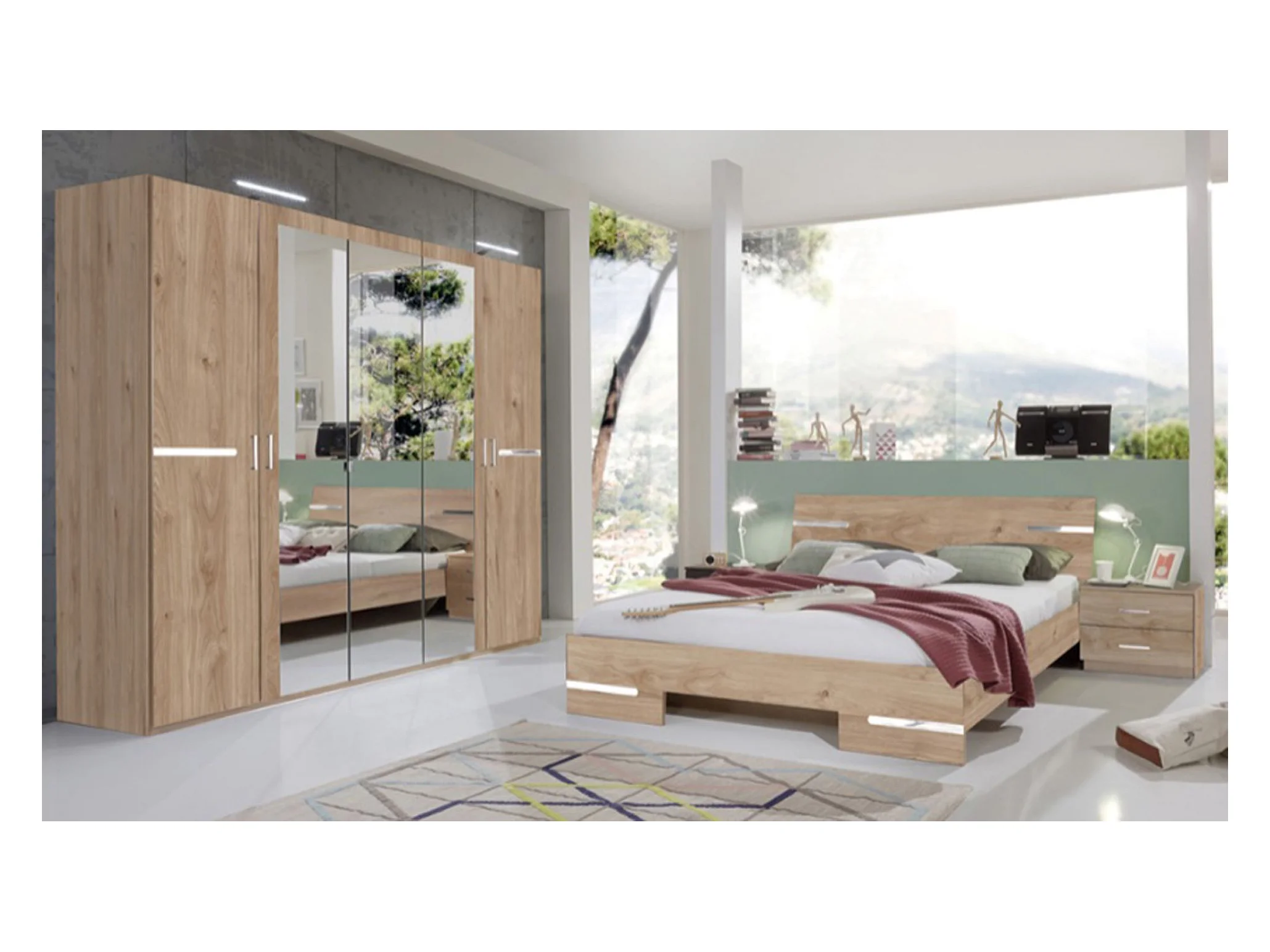 Chambre à coucher complète adulte (lit 160x200 cm + 2 chevets + armoire)