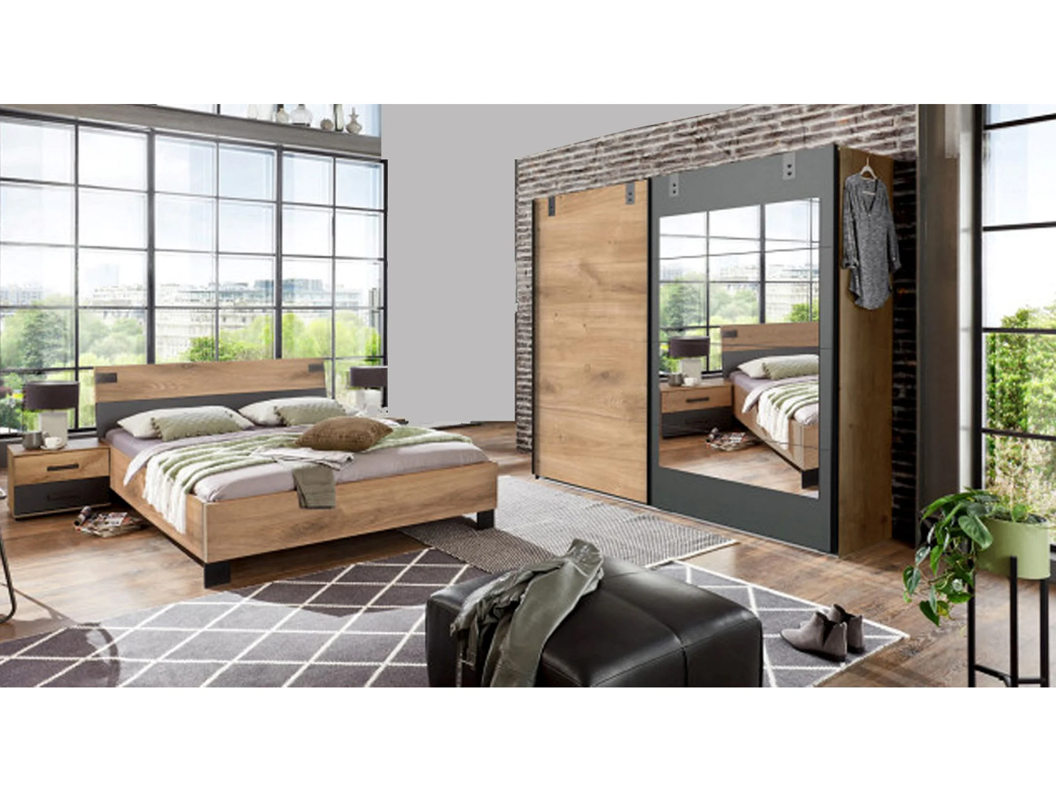 Chambre à coucher complète adulte (lit 160x200 cm + 2 chevets + armoire) coloris chêne foncé
