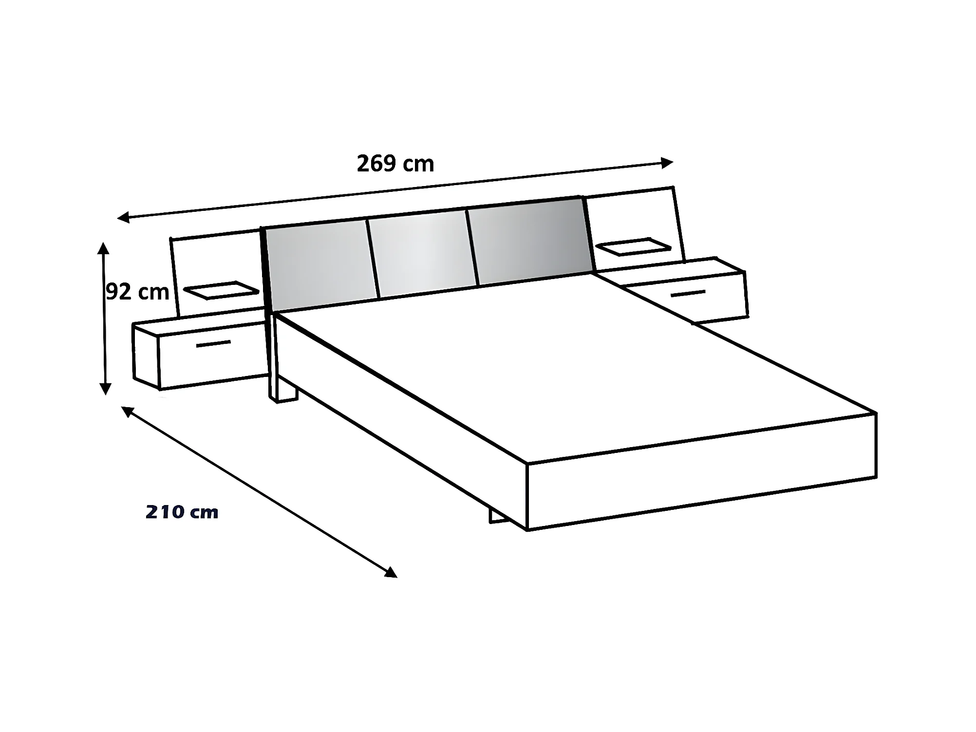 Chambre à coucher complète adulte (lit 160x200 cm Queen Size + 2 chevets + 1 tiroir + armoire)
