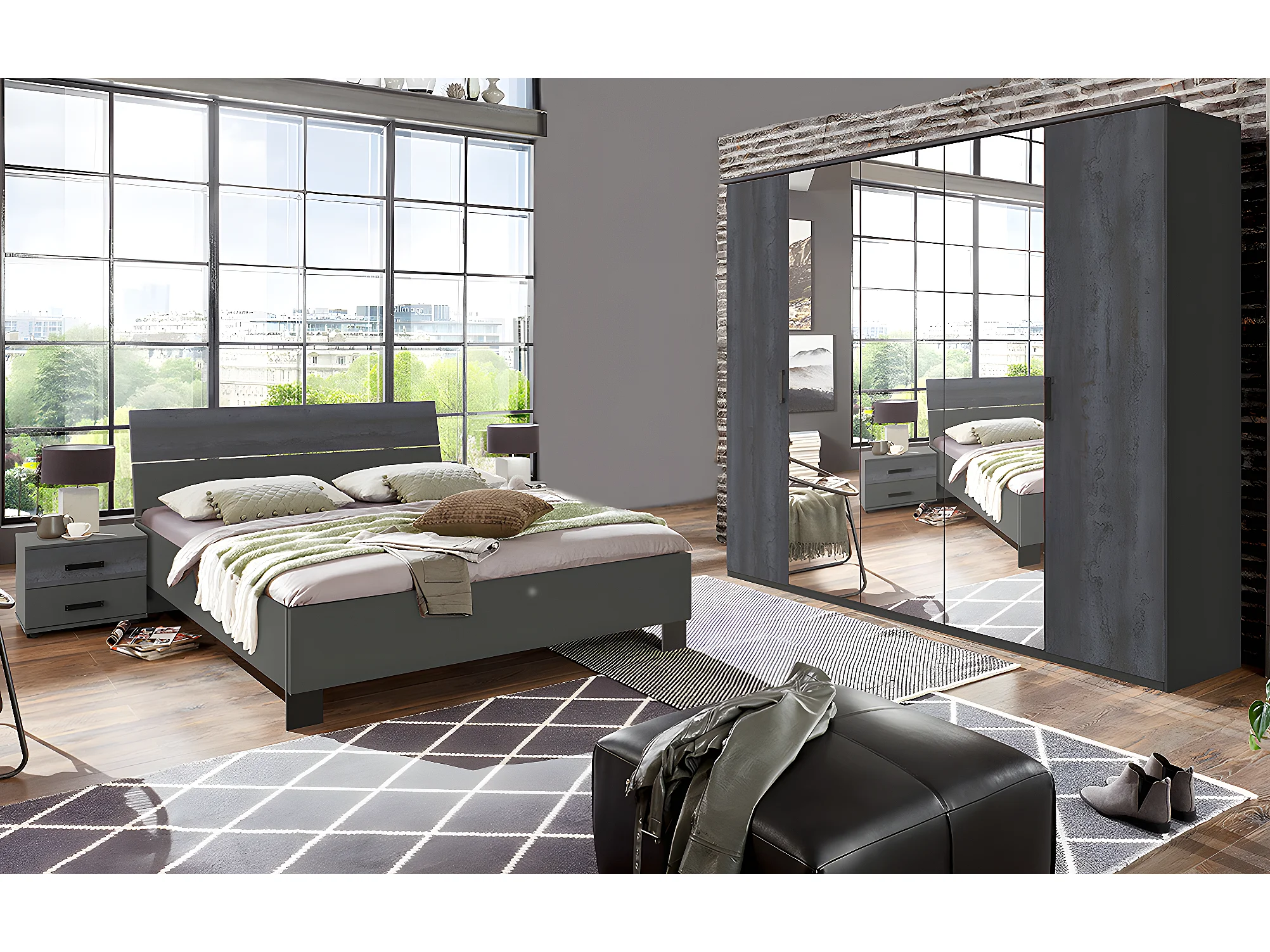 Chambre à coucher complète adulte (lit 180 x 200 cm + 2 chevets + armoire) coloris gris foncé