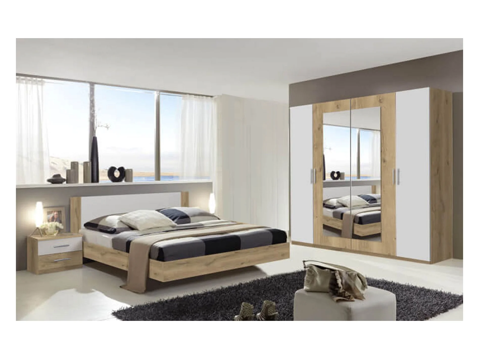 Chambre à coucher complète adulte (lit 180x200 cm + 2 chevets + armoire)
