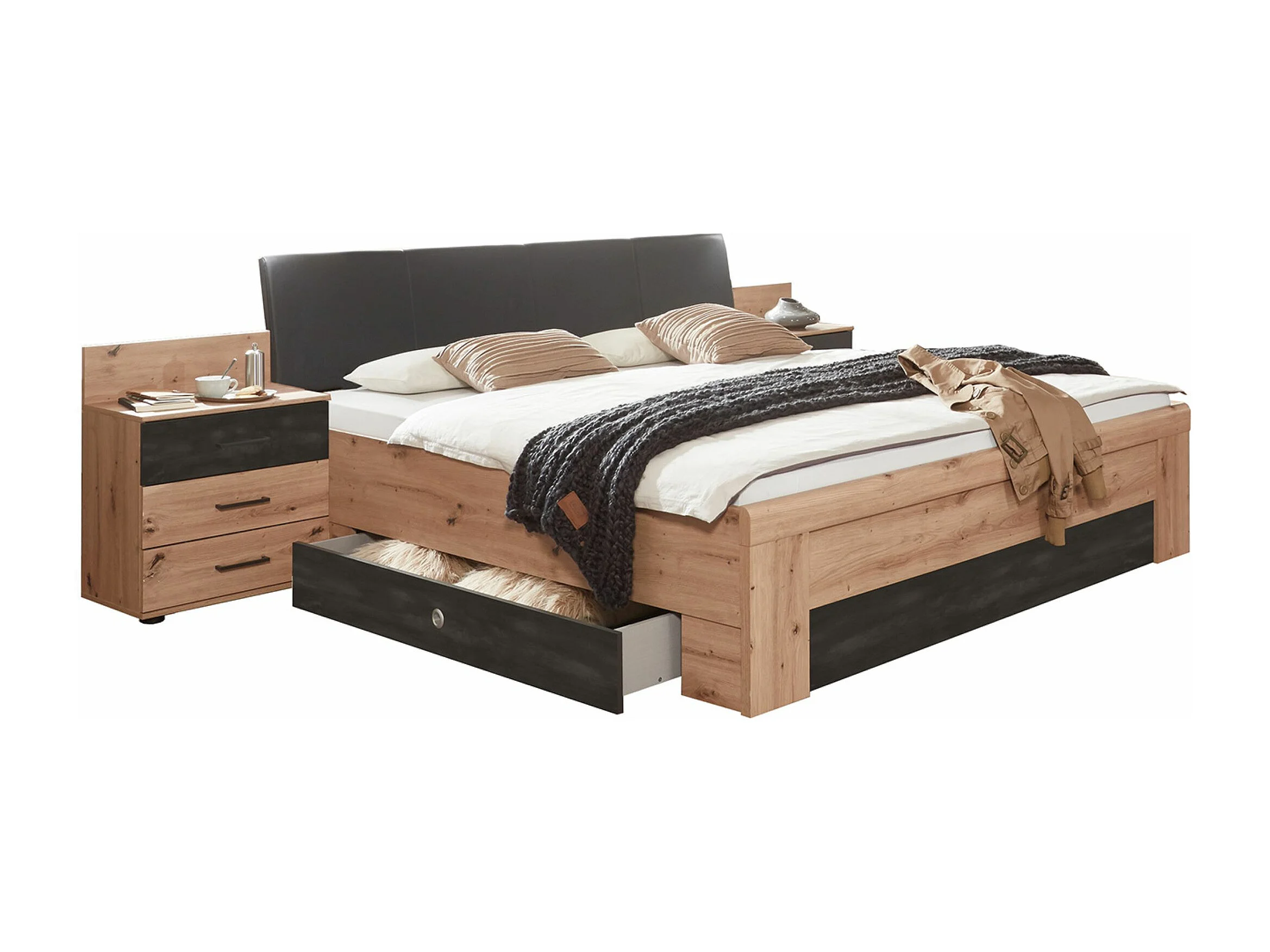 Chambre à coucher complète adulte (lit 180x200 cm + 2 chevets + armoire + 2 tiroirs lit + commode)