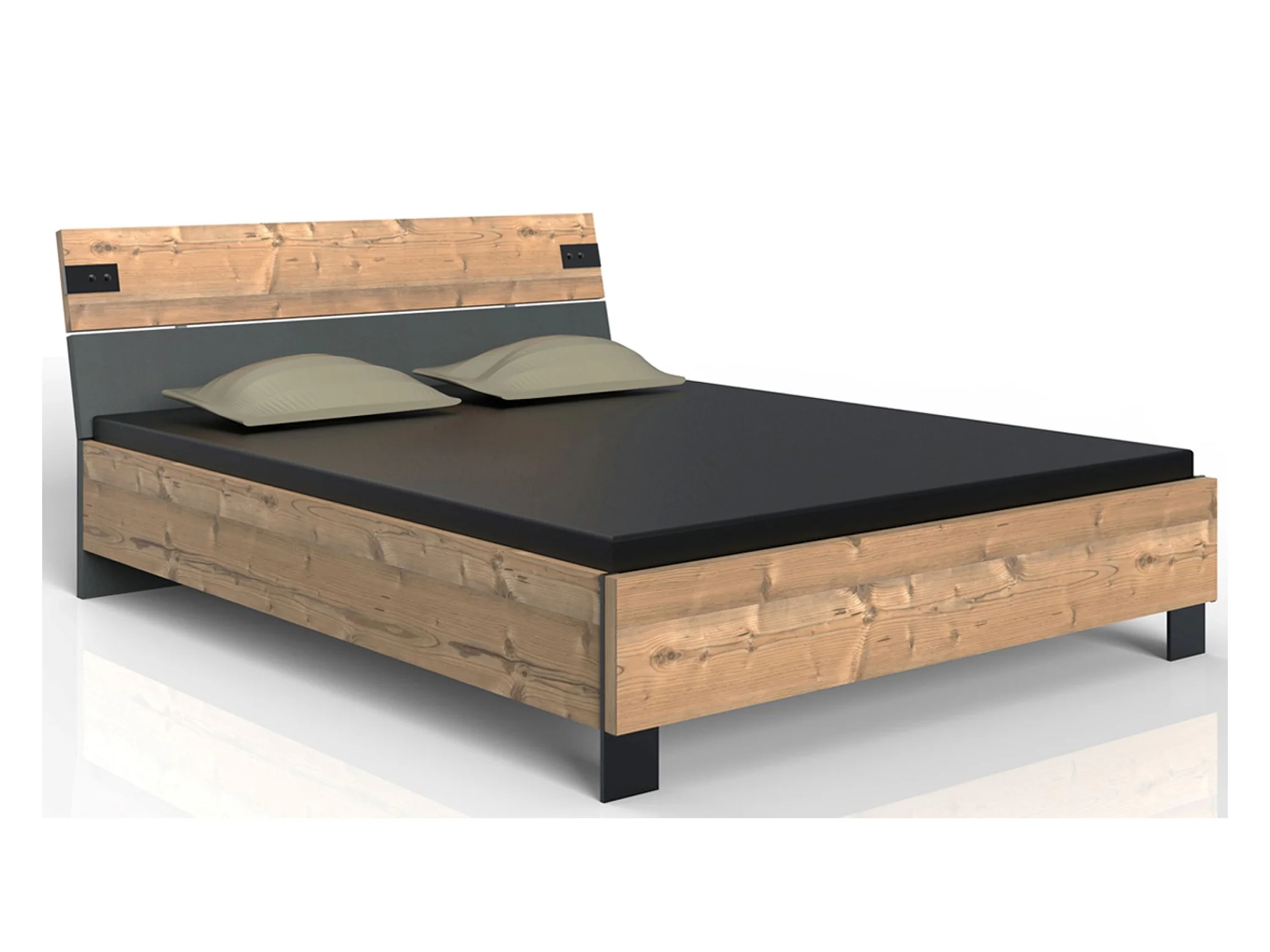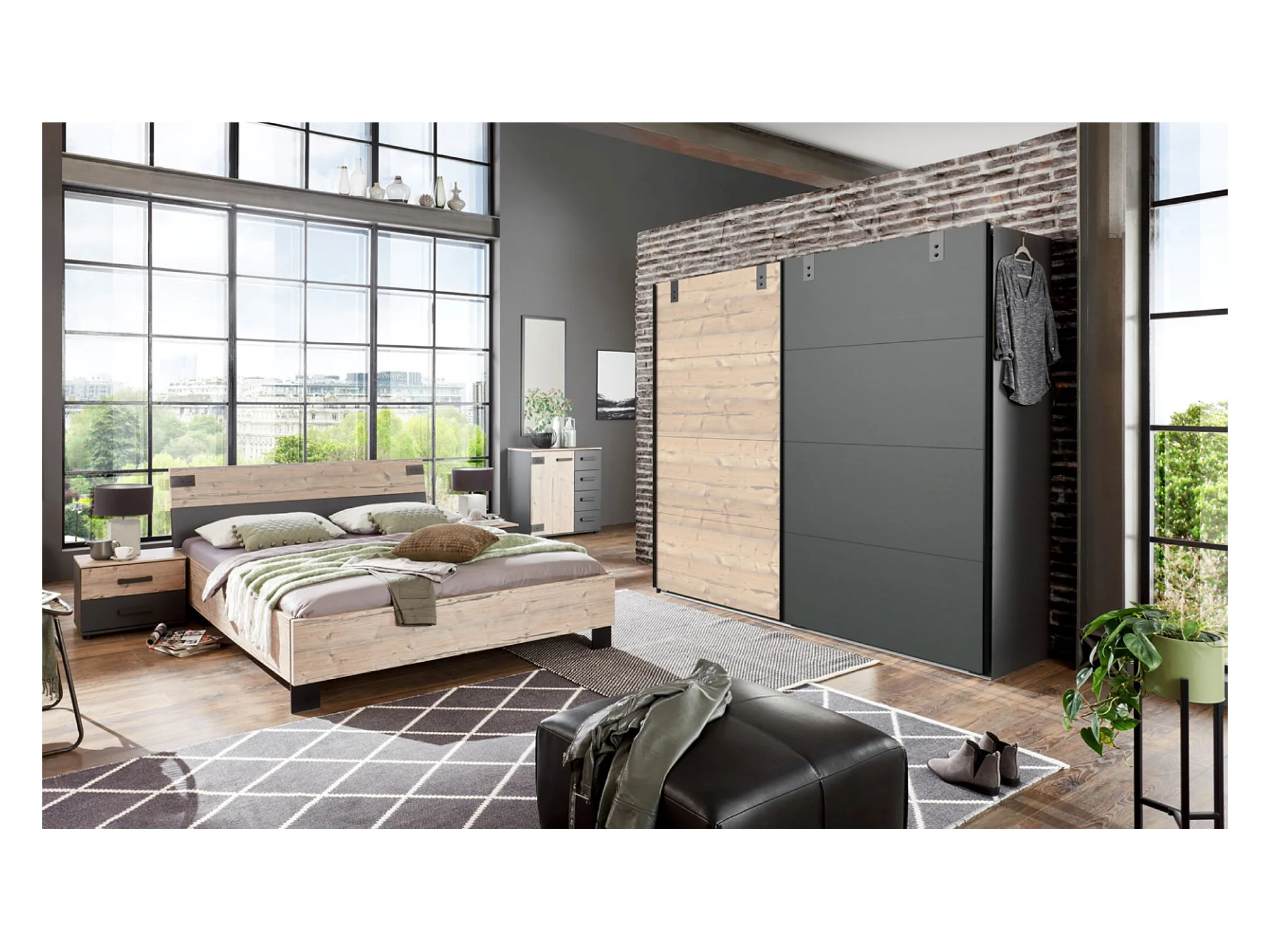 Chambre à coucher complète adulte (lit 180x200 cm + 2 chevets + armoire + commode), coloris chêne
