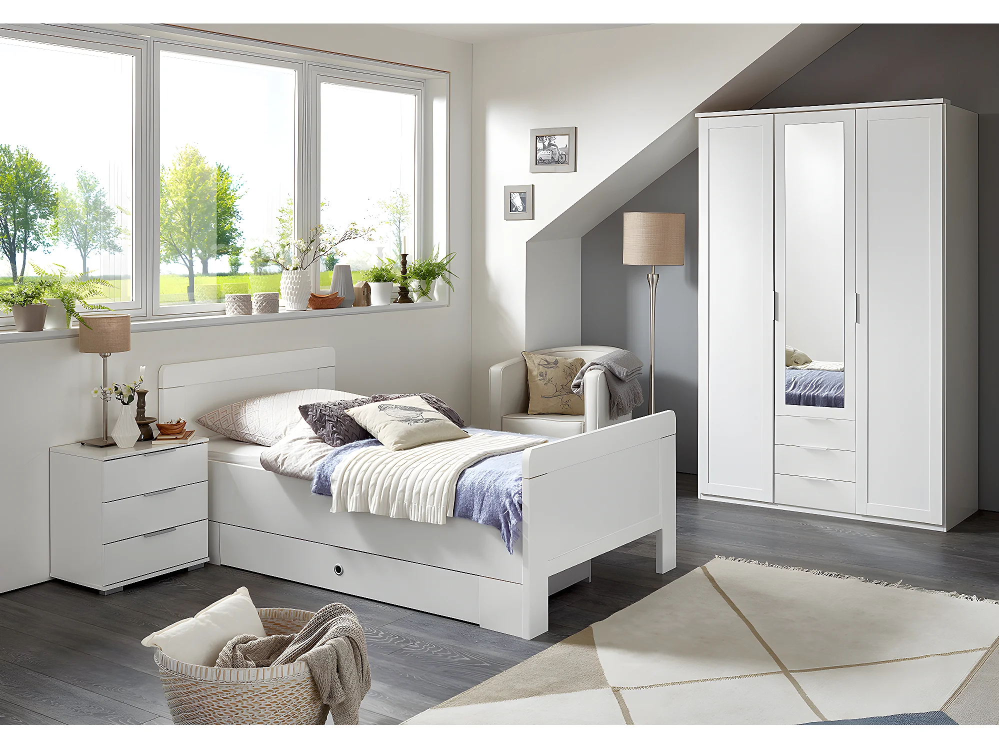 Chambre à coucher complète enfant (lit 90x200cm+ tiroir + chevet + armoire) coloris blanc