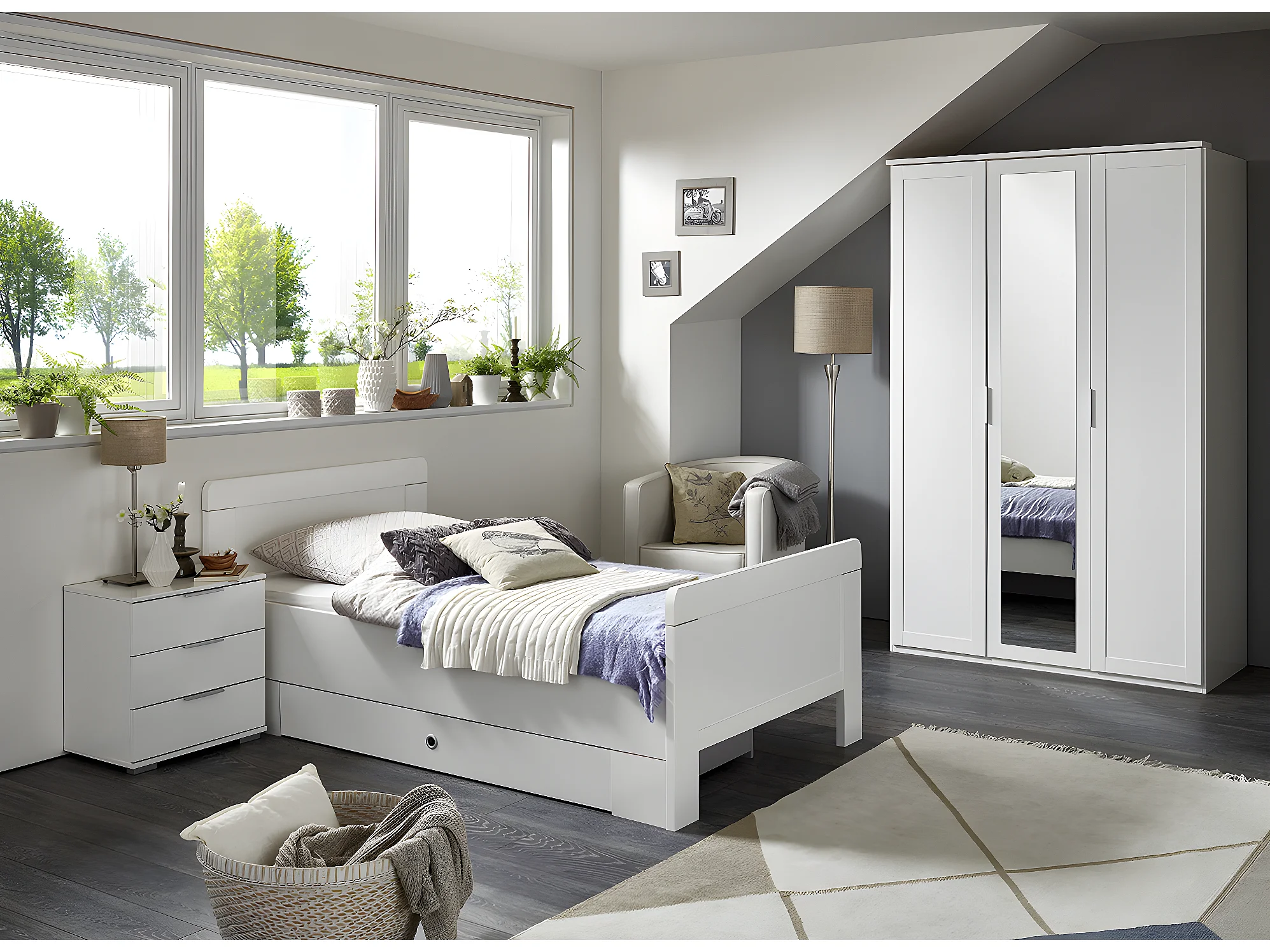 Chambre à coucher complète enfant (lit 90x200cm + tiroir + chevet + armoire) coloris blanc
