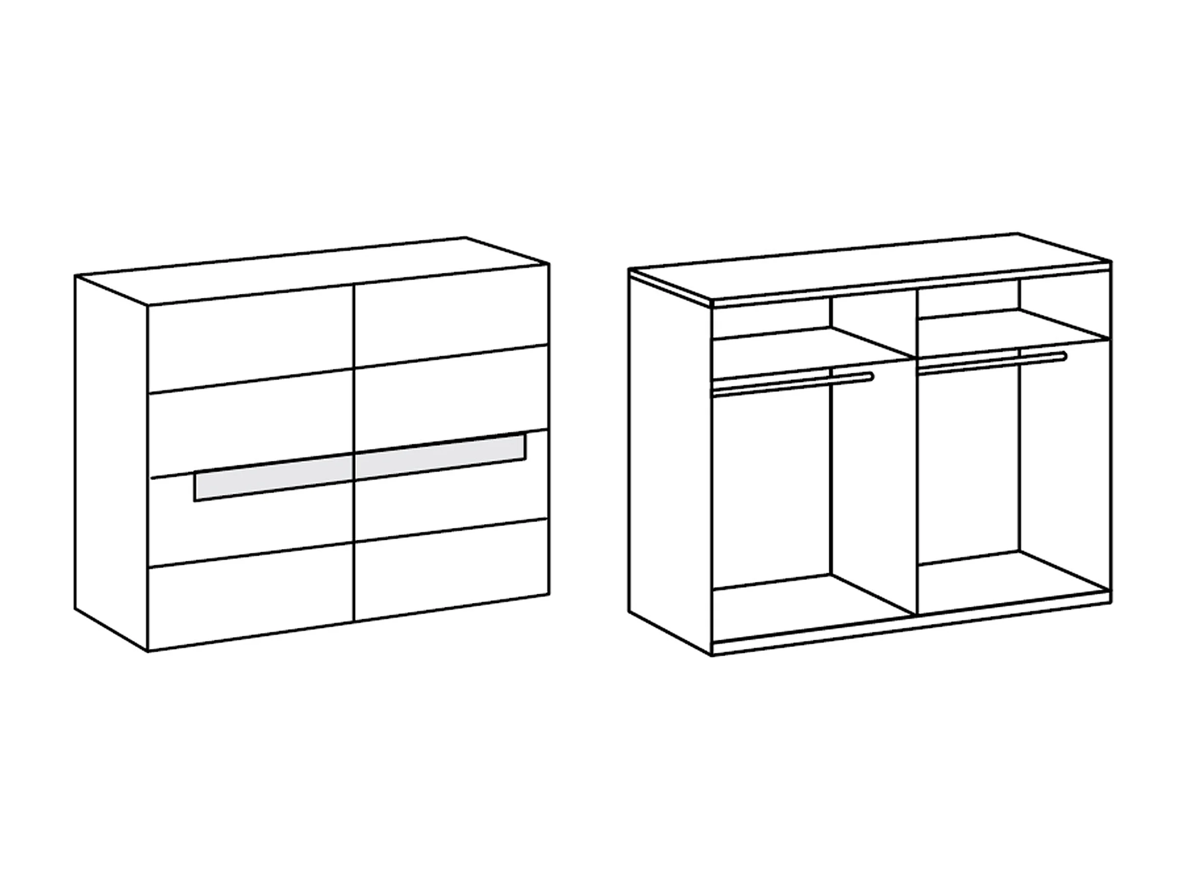 Chambre à coucher complète, imitation chêne, rechampis verre blanc + chrome - Dim : 160 x 200 cm