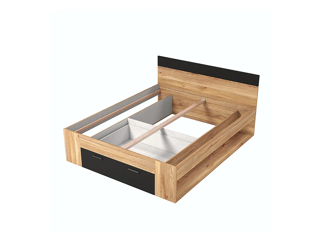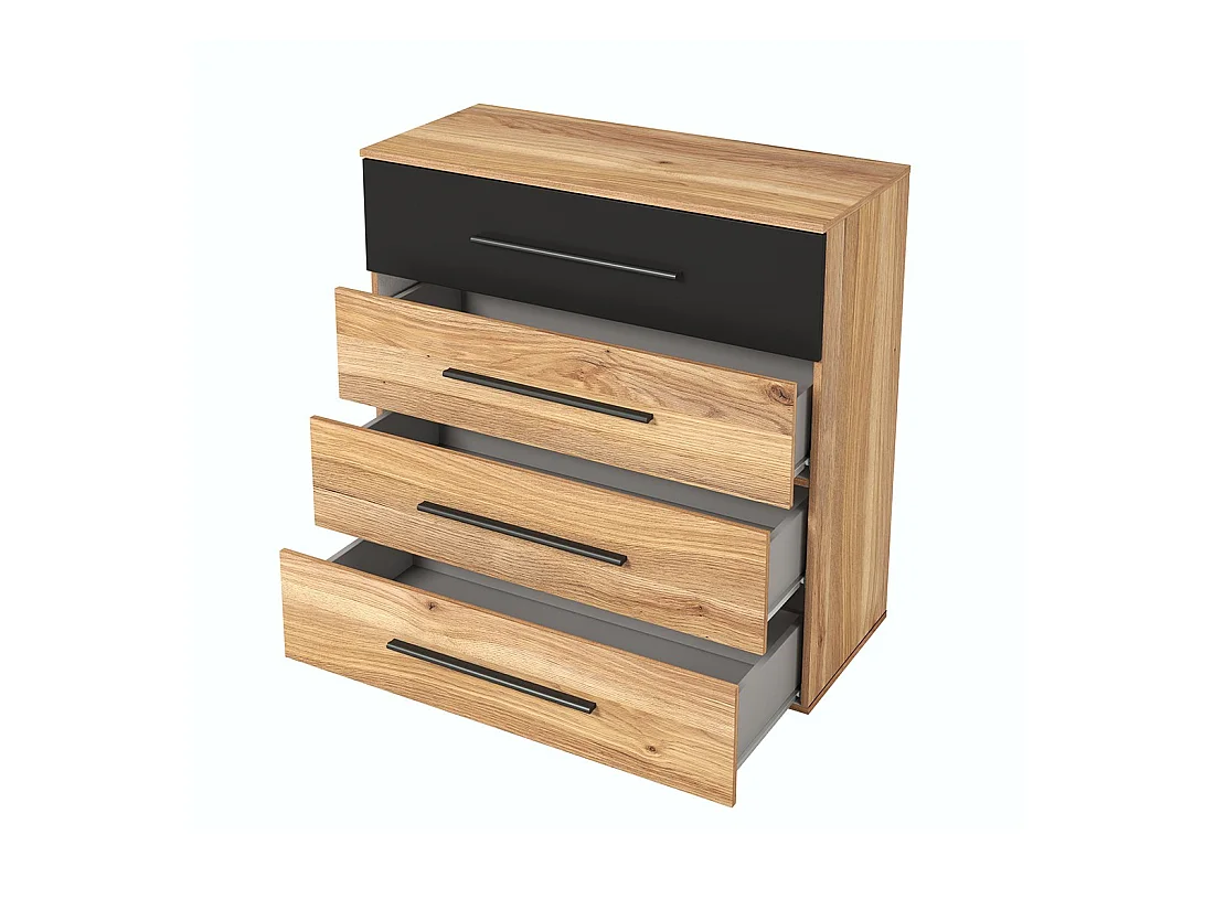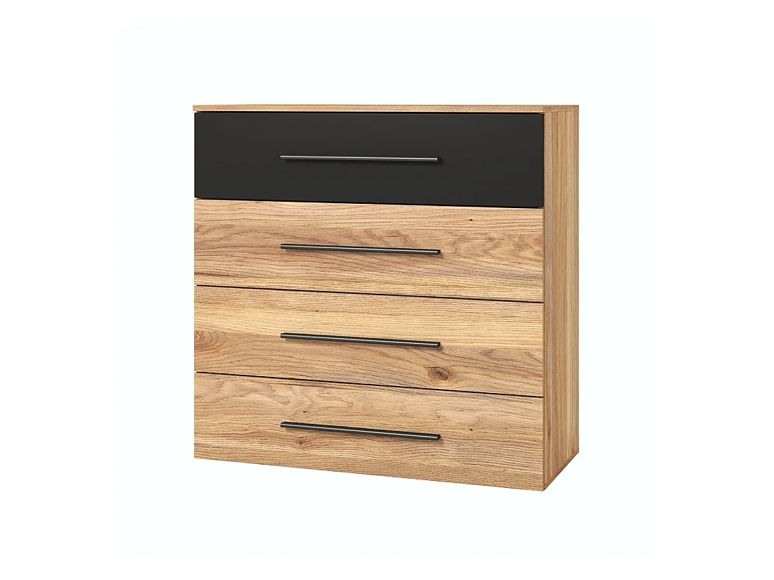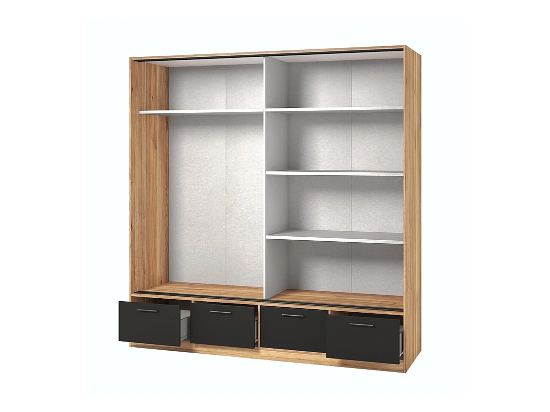 Chambre à coucher design collection EOS : Armoire, Lit 180x200, commode, chevets. Couleur chêne clair et noir