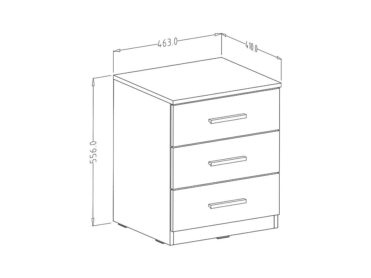Chambre à coucher FLOYD : Armoire 200cm, Lit 160x200, commode, chevets. Couleur chêne foncé et noir brillant