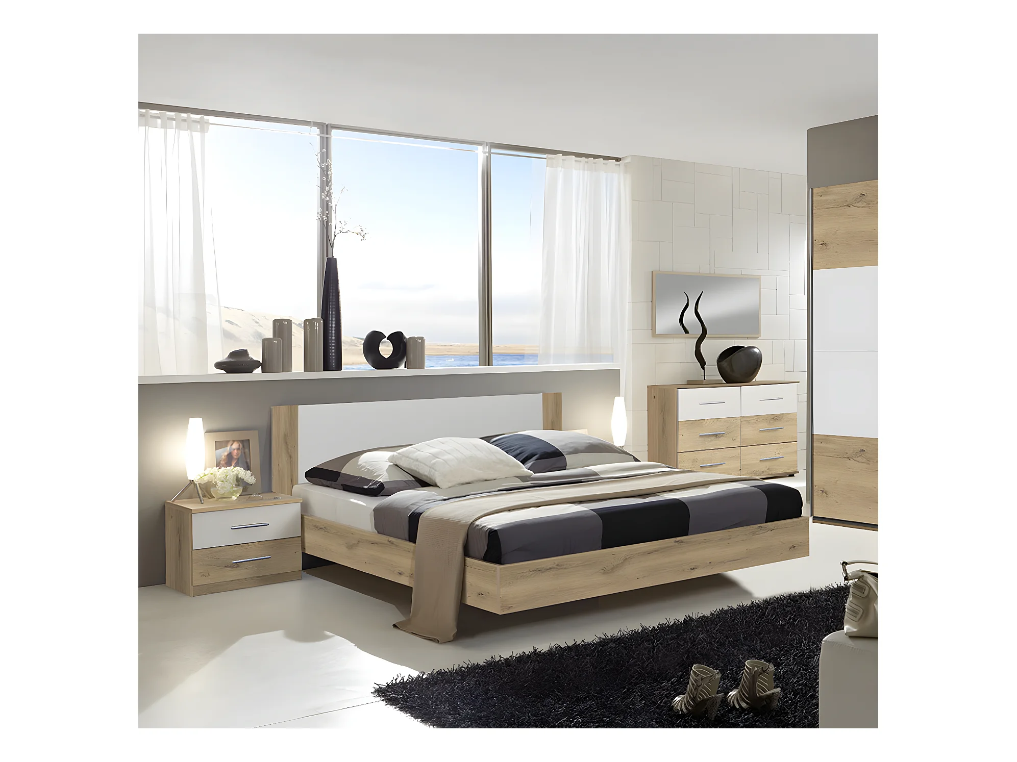 Chambre adulte 140 X 200 cm imitation chêne poutre/blanc