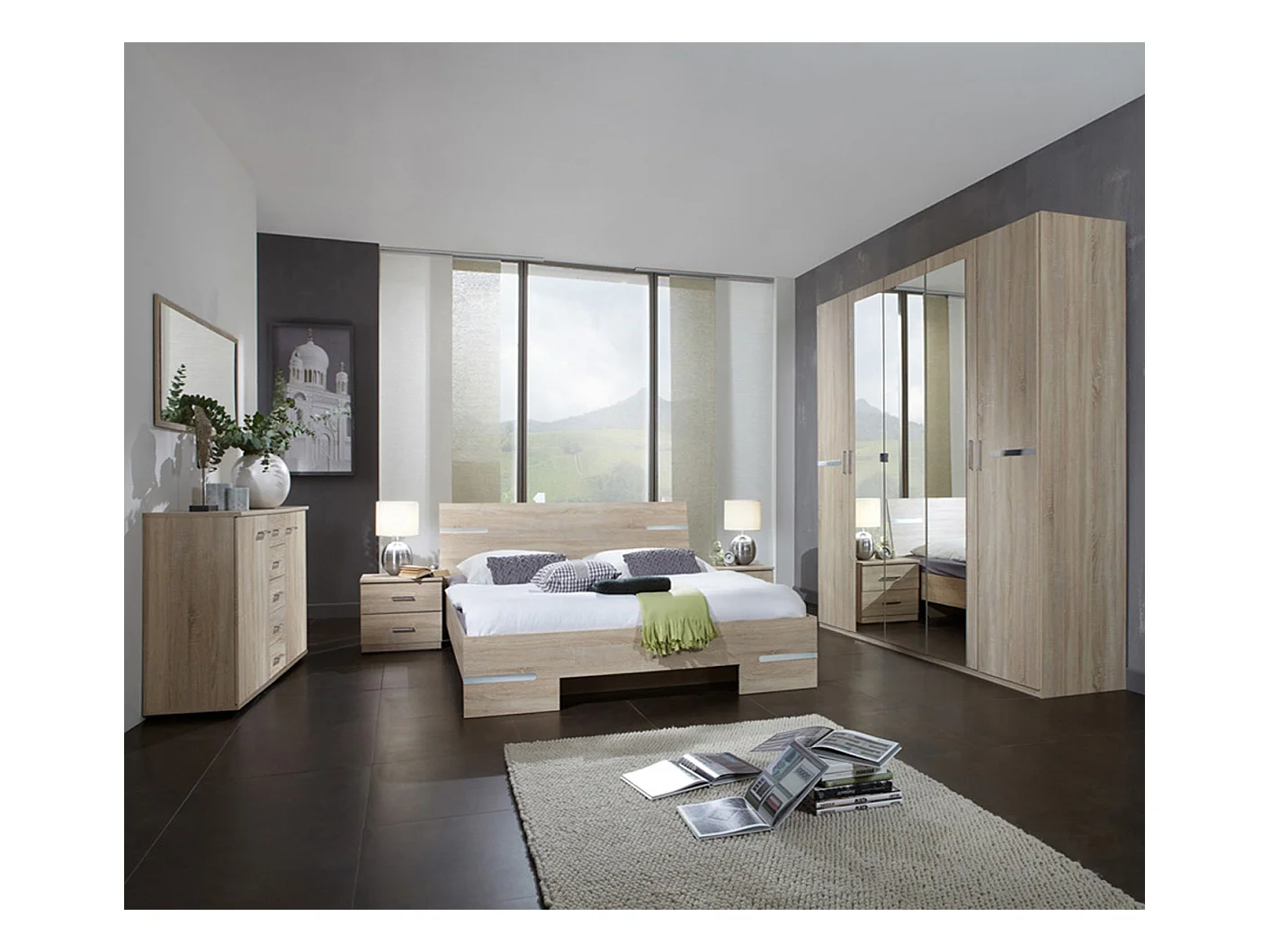 Chambre adulte en panneaux de particules imitation chêne - Dim : 180 X 200 cm