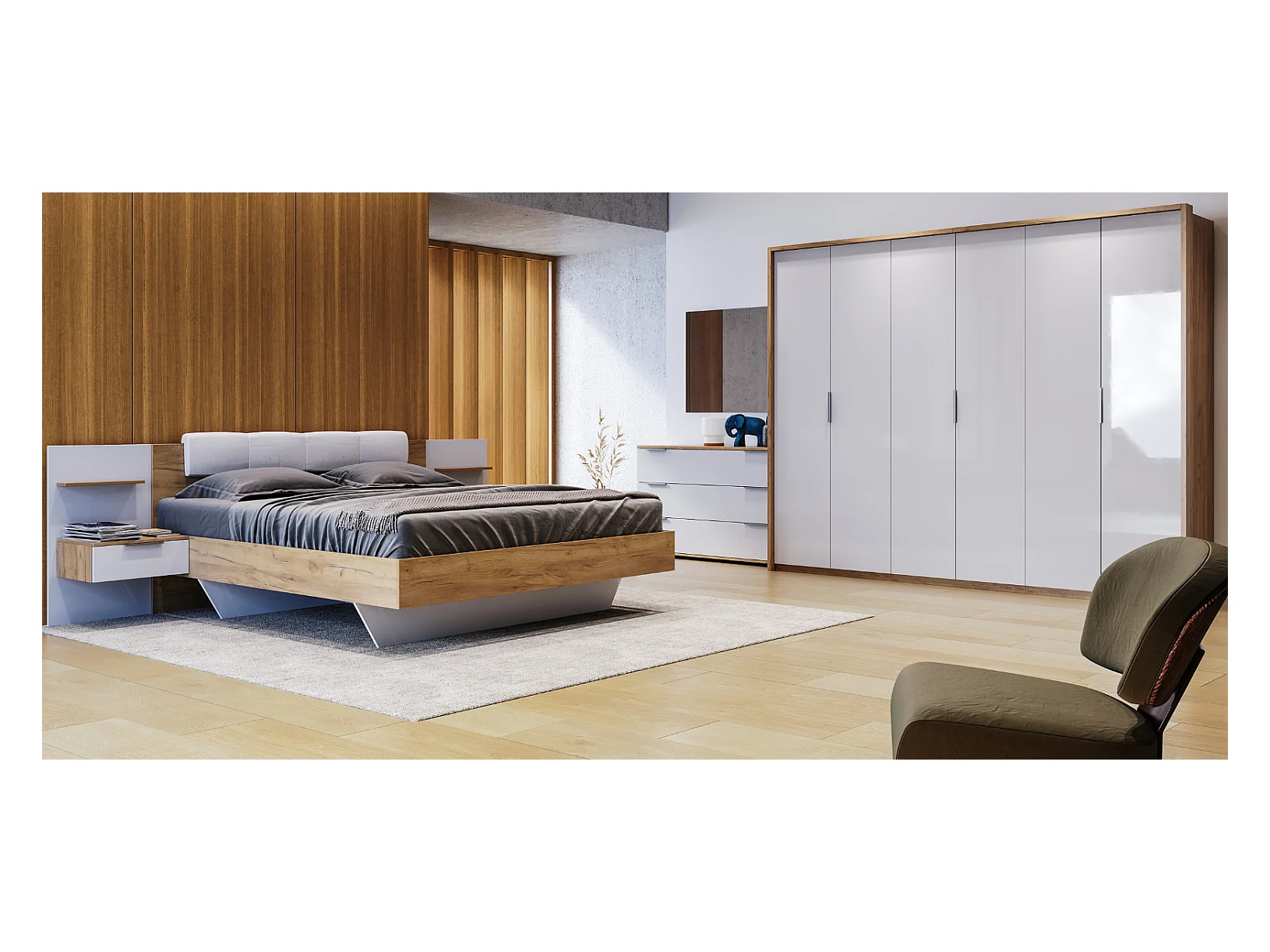 Chambre ASTO II , blanc laqué et chêne clair 160x200 cm - SANS ARMOIRE