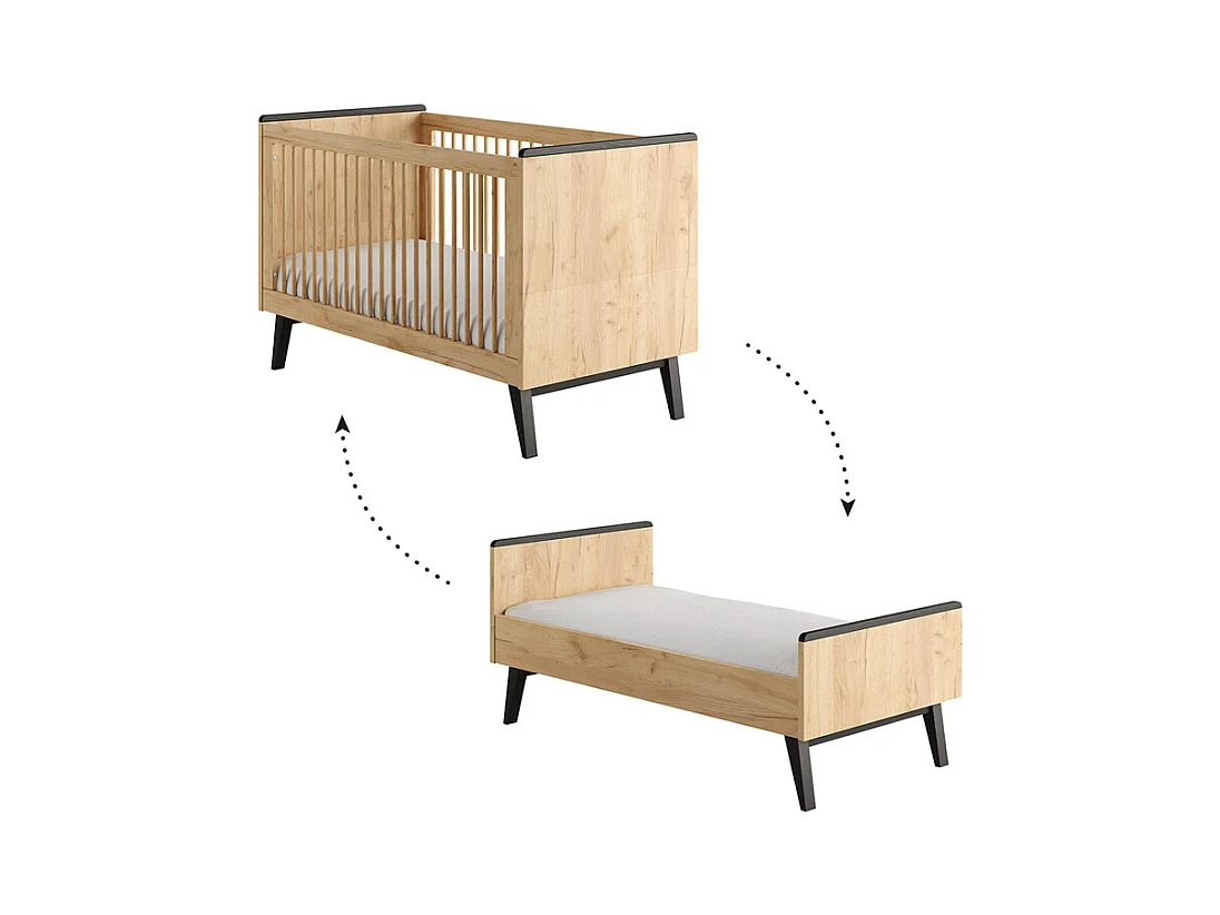 Chambre complète lit évolutif 70x140 commode à langer et armoire 2 portes Retro Bois