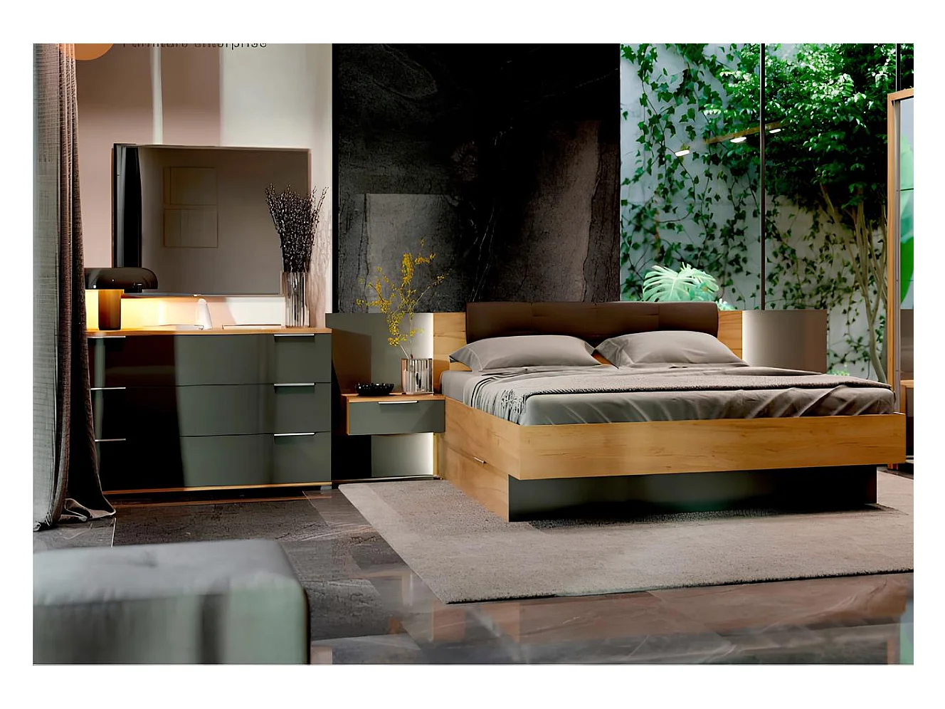 Chambre LUNA avec tiroir de rangement, chevets suspendus, lave mat et chêne clair 160x200 cm - SANS ARMOIRE