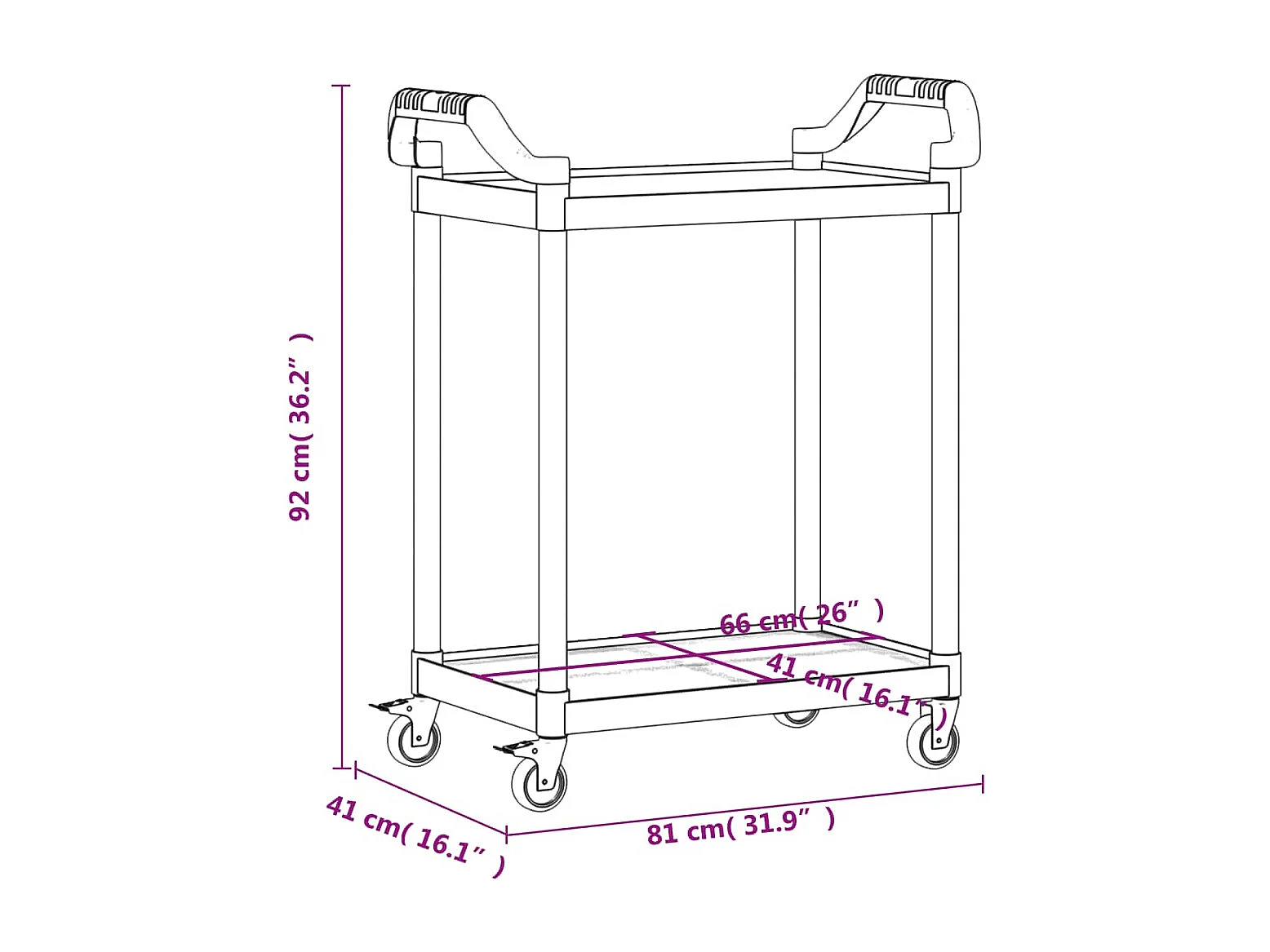 Chariot à 2 niveaux noir 81x41x92 aluminium