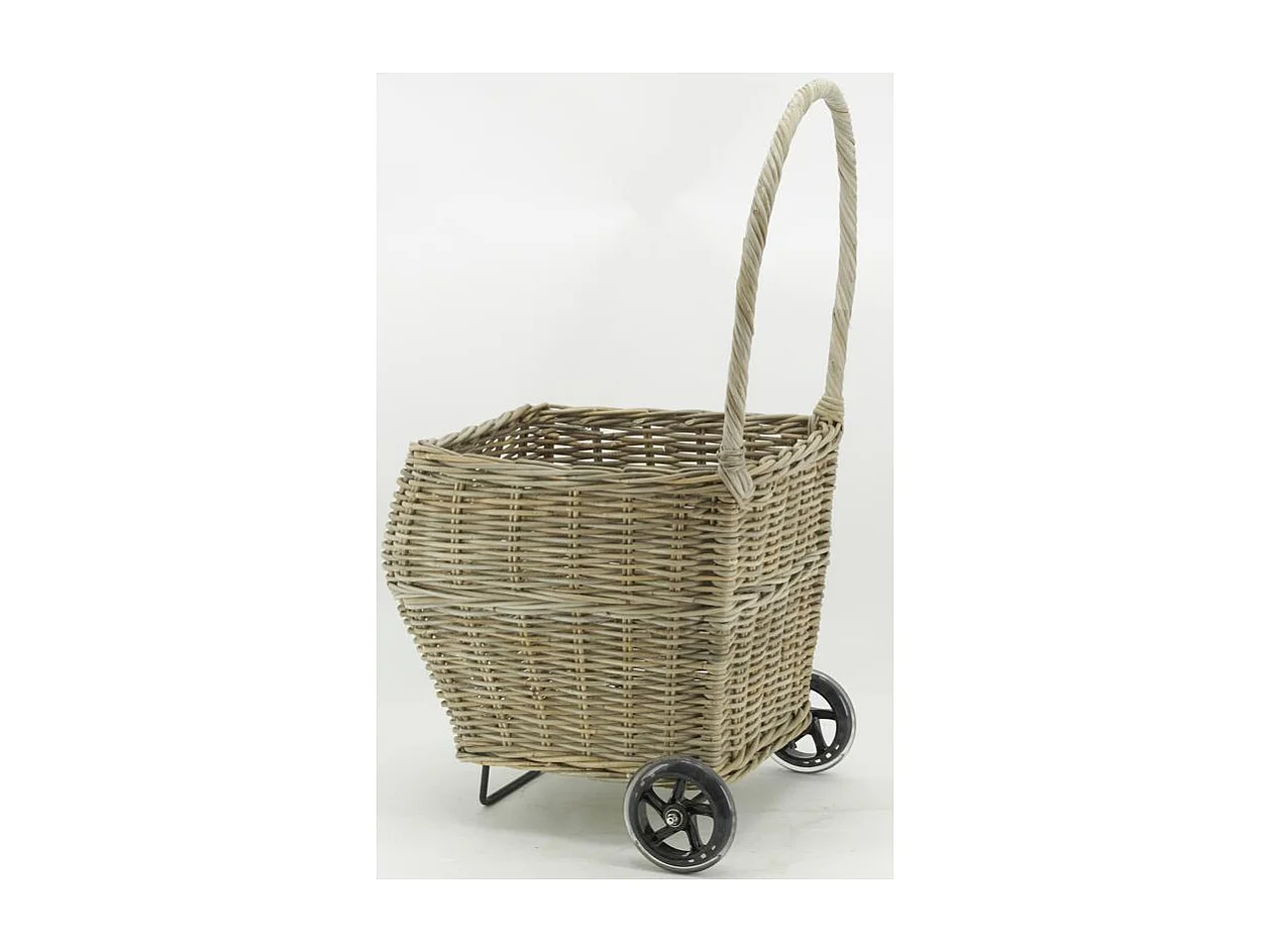 Chariot à bûches en rotin gris Arrondi